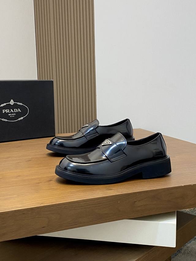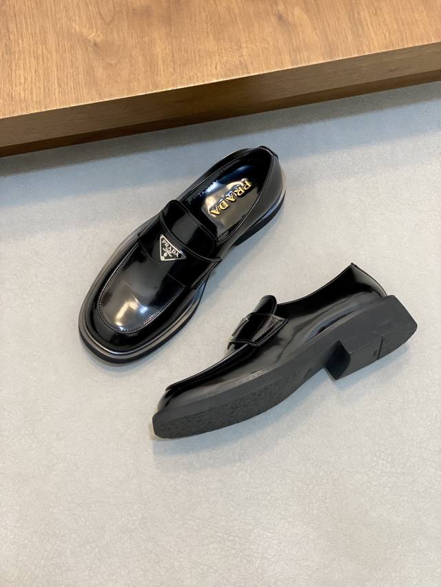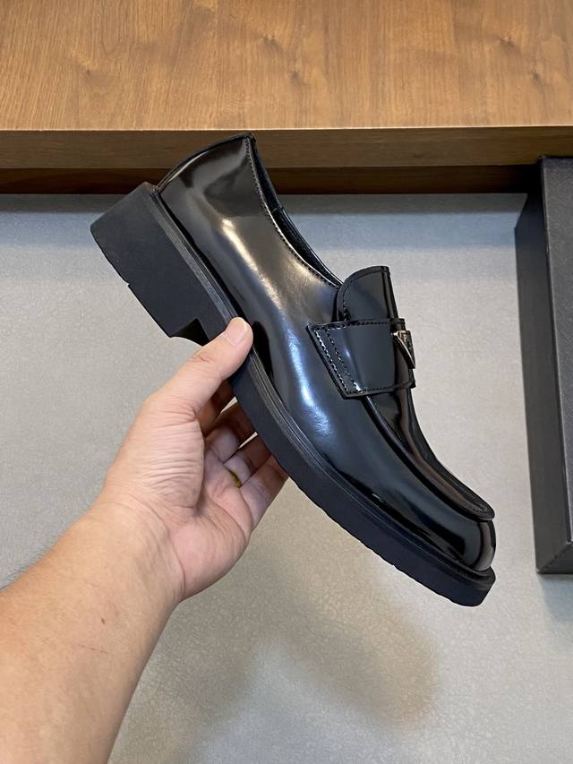 雕花款 prad*德比男鞋到货 专柜品质 手工擦色开边珠牛皮面 内里垫脚全牛皮 耐磨防滑橡胶发泡大底 轻便舒适 上脚霸气百搭 皮鞋码数:39 40 41 42
