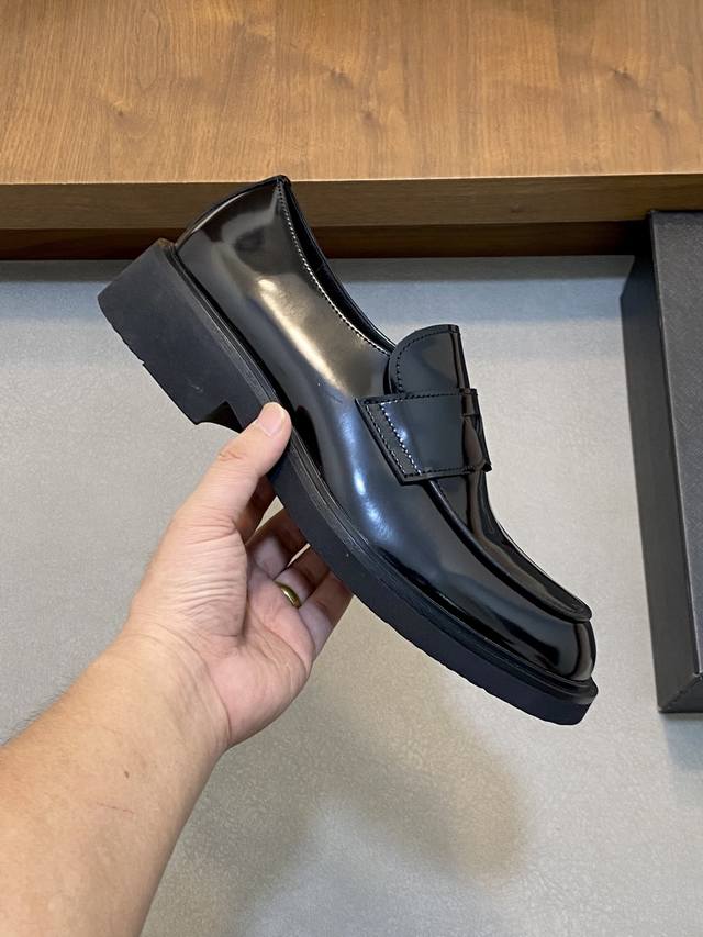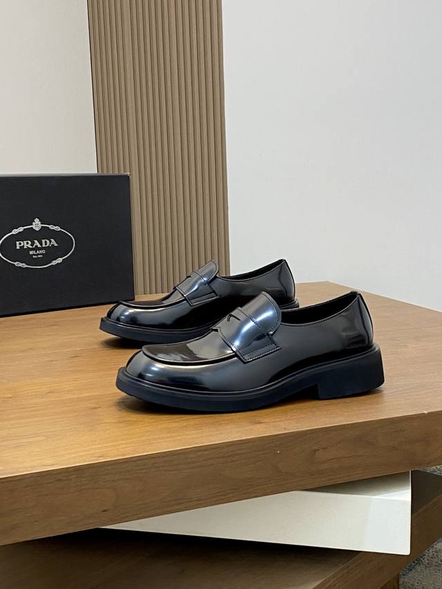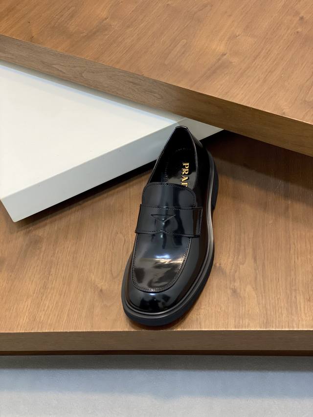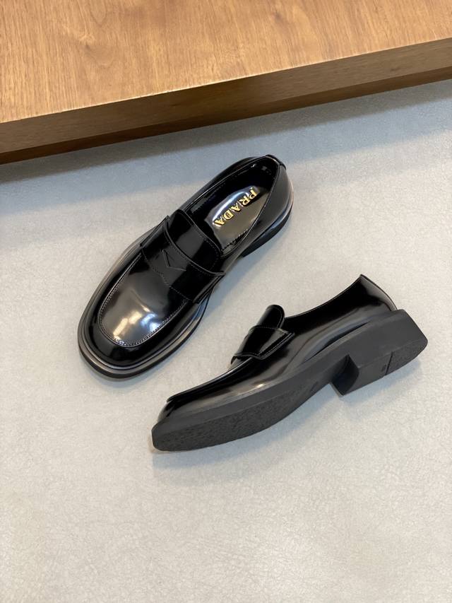 雕花款 prad*德比男鞋到货 专柜品质 手工擦色开边珠牛皮面 内里垫脚全牛皮 耐磨防滑橡胶发泡大底 轻便舒适 上脚霸气百搭 皮鞋码数:39 40 41 42