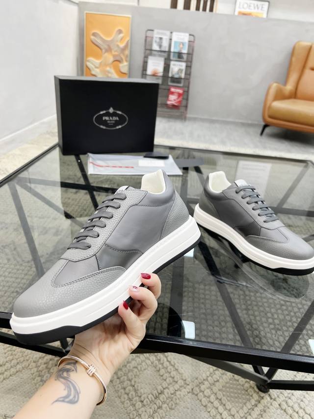 顶级代购 普 炸街男神新品来袭,超人气爆款专柜新款,原厂配置意大利进口牛皮面料,高品质复杂拼接工艺,经典的外观搭配气垫新底更加潮达人,进口牛皮内里垫,透气舒适,