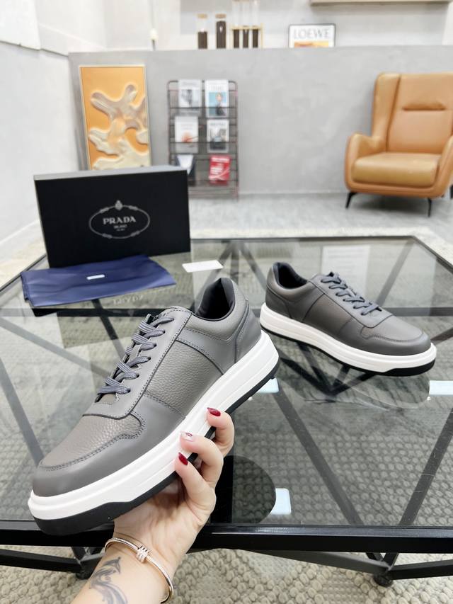 顶级代购 普 炸街男神新品来袭,超人气爆款专柜新款,原厂配置意大利进口牛皮面料,高品质复杂拼接工艺,经典的外观搭配气垫新底更加潮达人,进口牛皮内里垫,透气舒适,