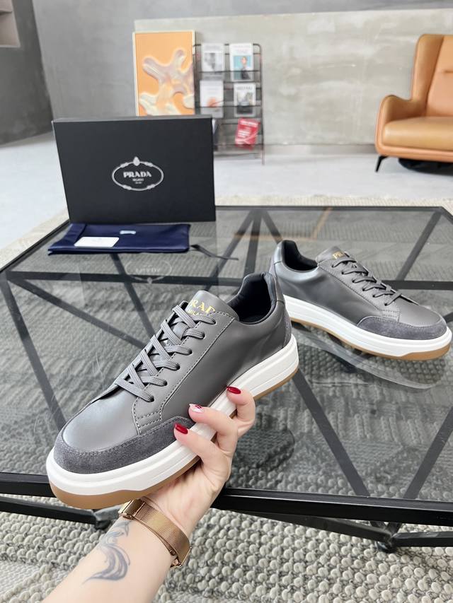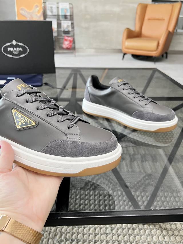 顶级代购 普 炸街男神新品来袭,超人气爆款专柜新款,原厂配置意大利进口牛皮面料,高品质复杂拼接工艺,经典的外观搭配气垫新底更加潮达人,进口牛皮内里垫,透气舒适,
