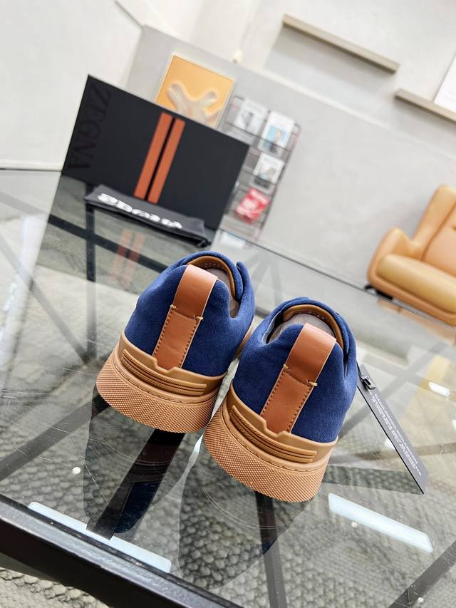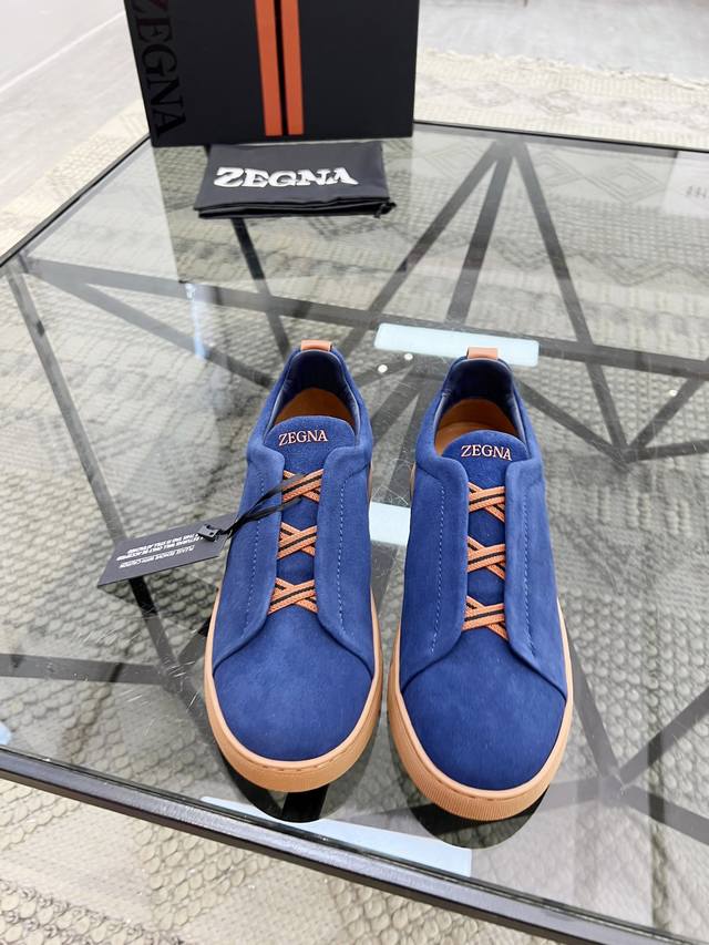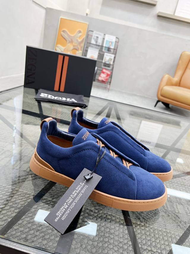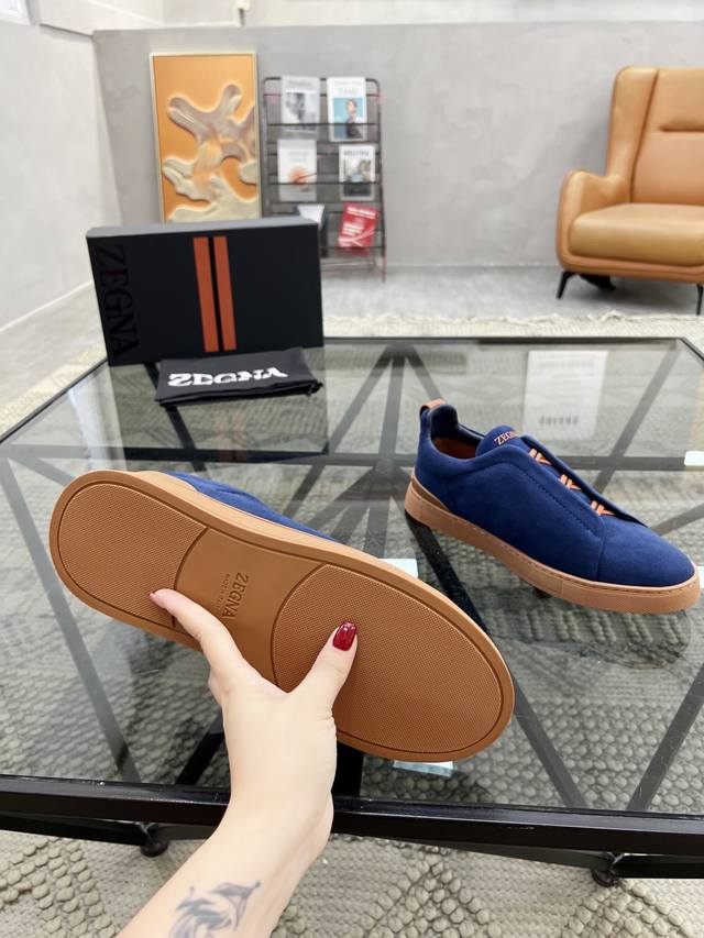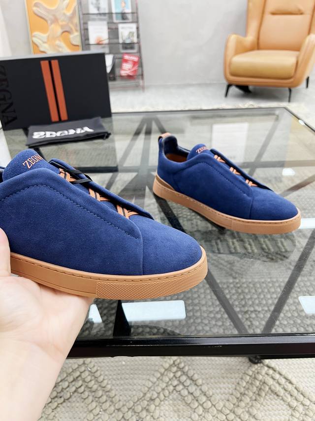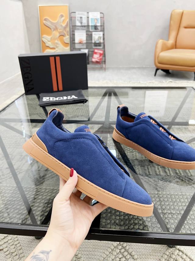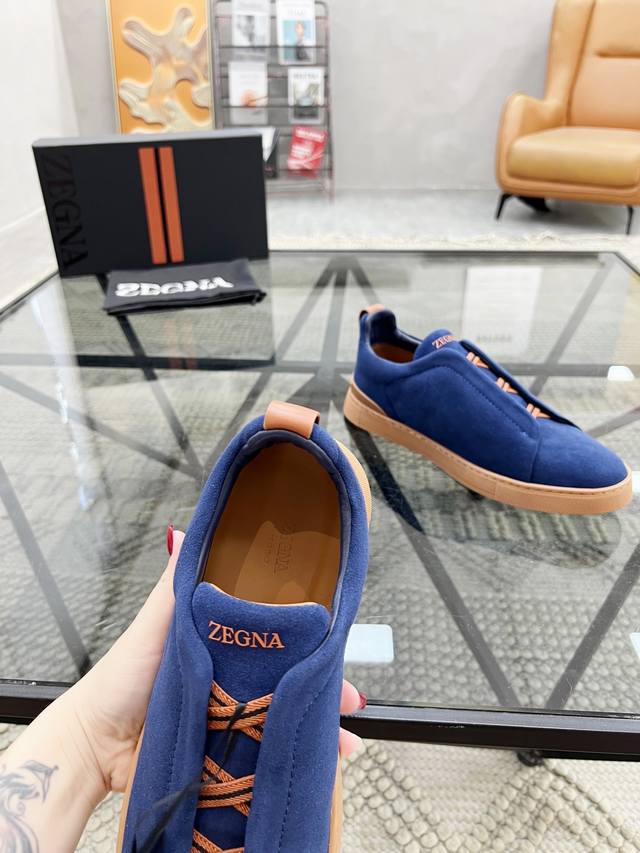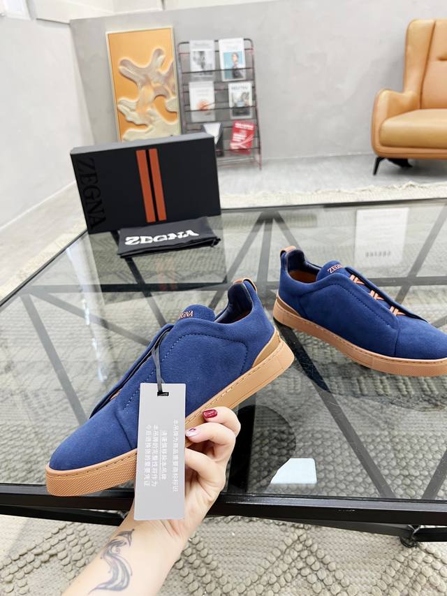 实价 新款zegna麂皮和皮革 Triple Stitch Monte 奢华休闲鞋...