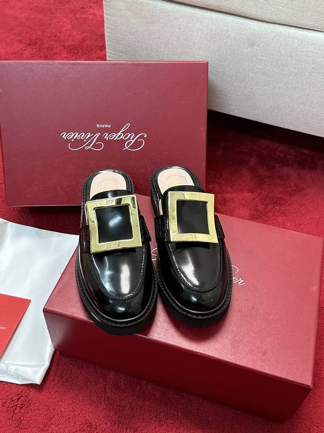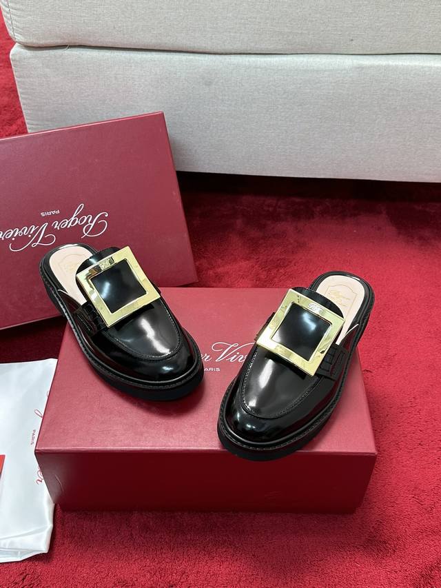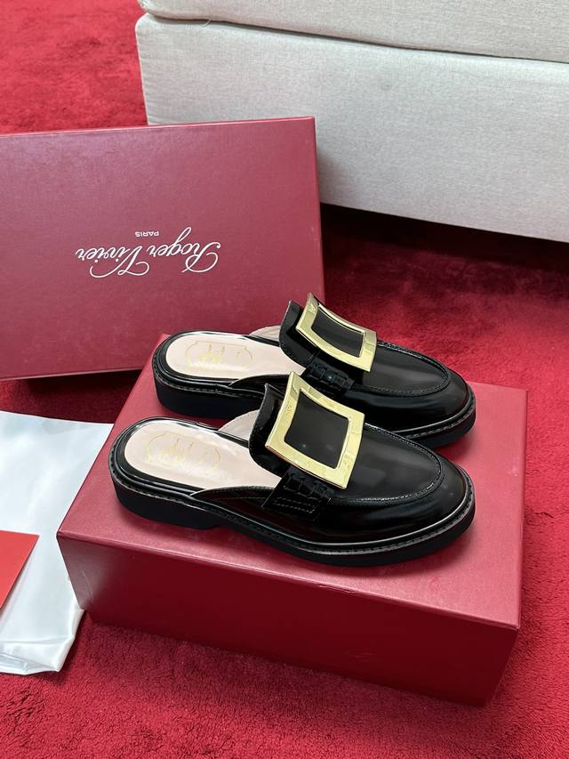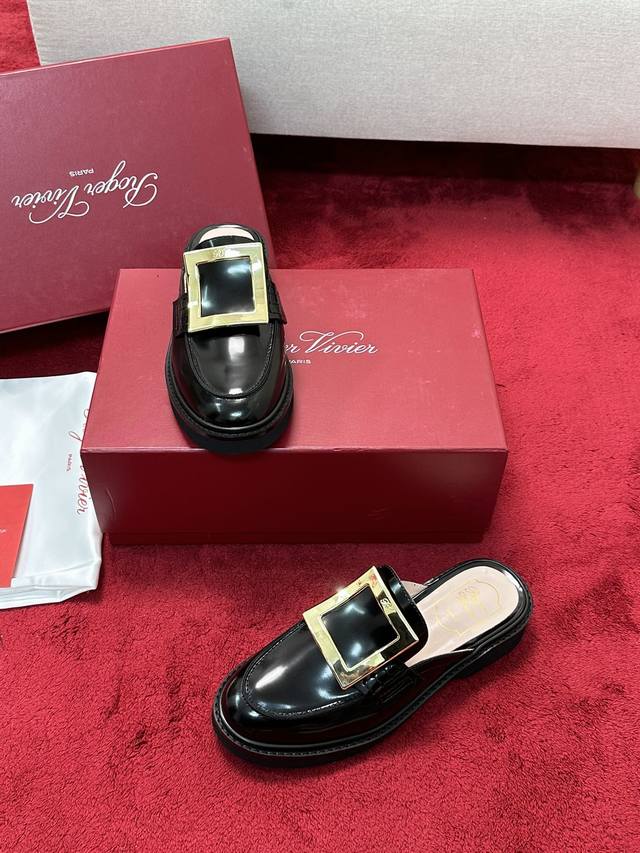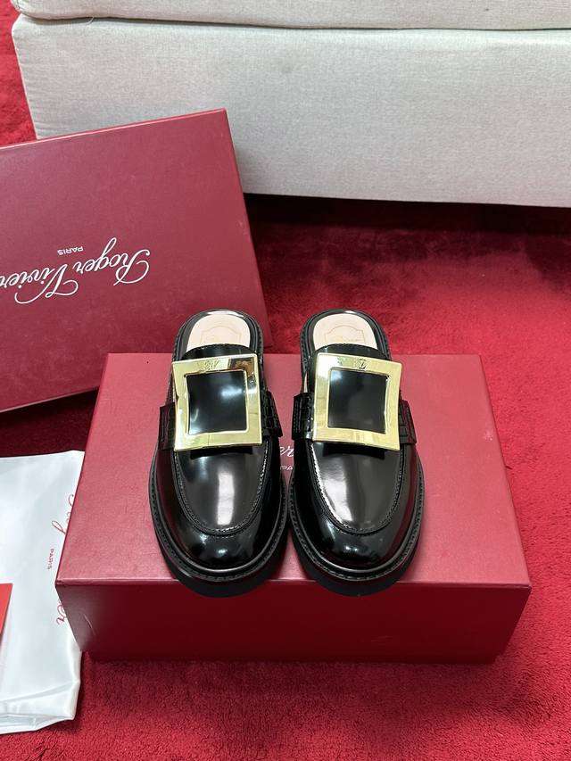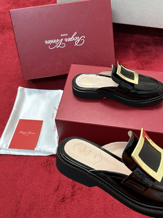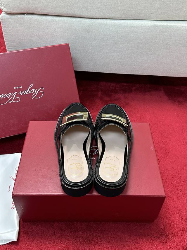 顶级版本代购级roger Vivier Fw25 Rv2025春夏新款钻扣穆勒拖鞋
