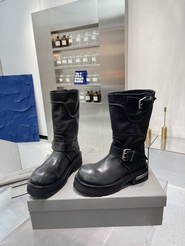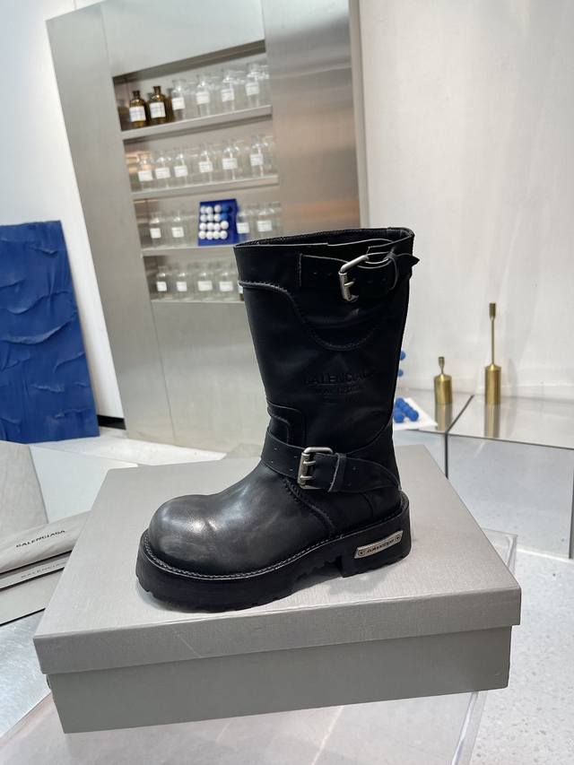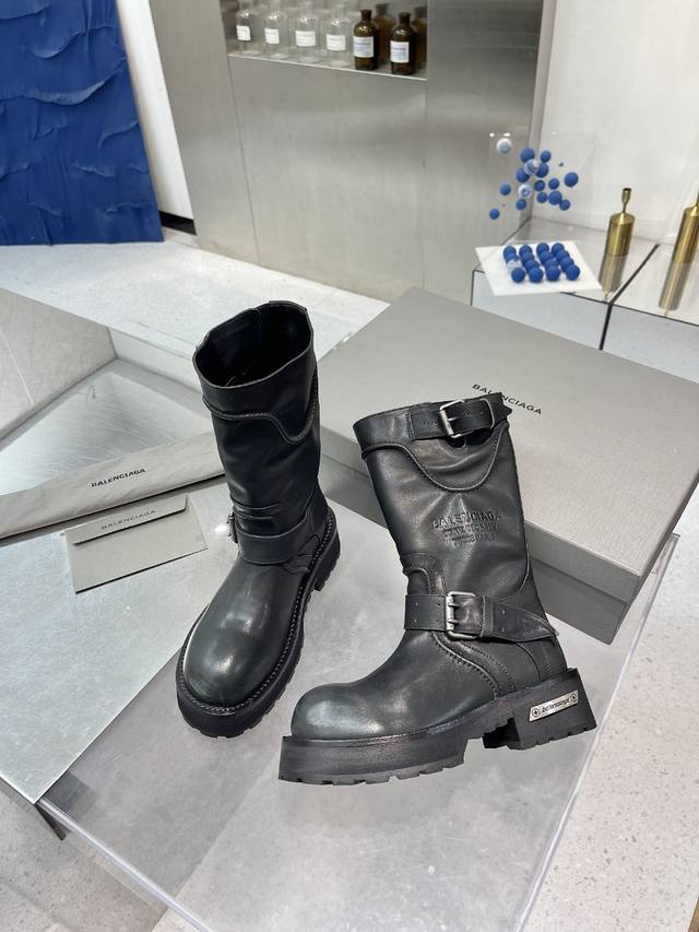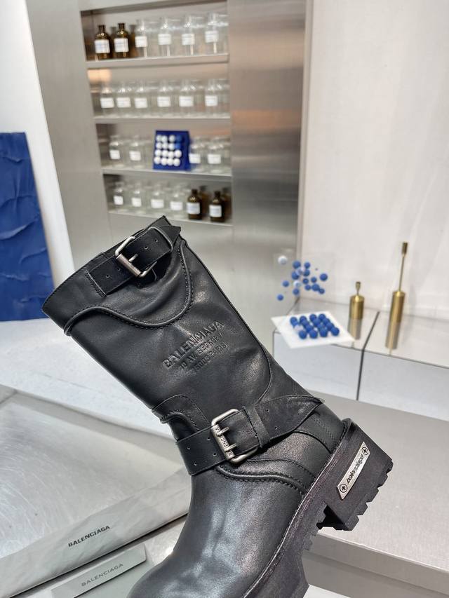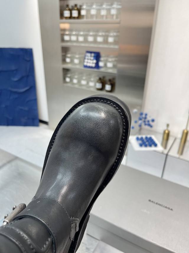 25秋冬新款Balenc**A巴黎家 25Fw毒液Venom高筒靴 机车朋克风马丁短靴 搭扣大厚底长靴