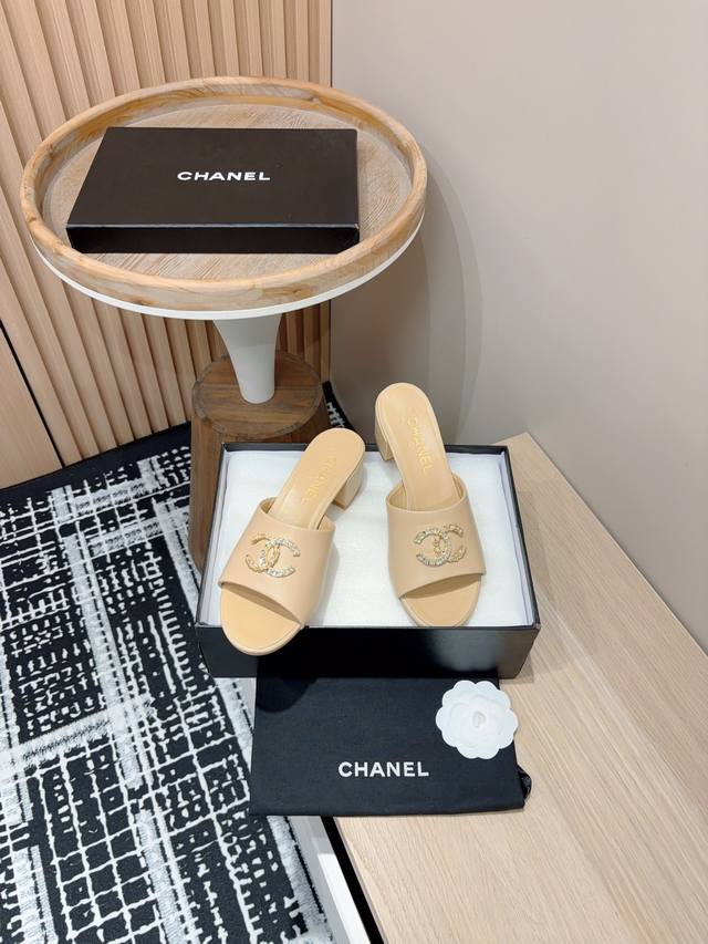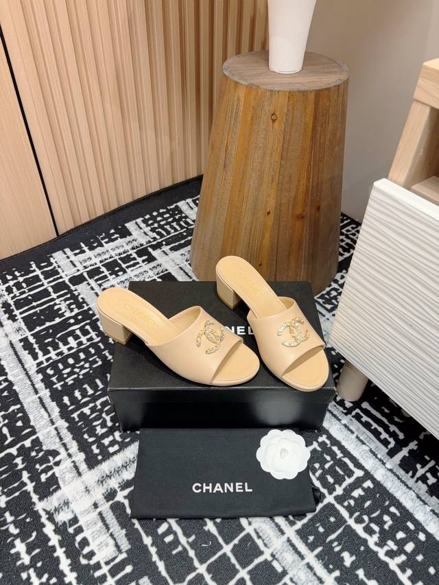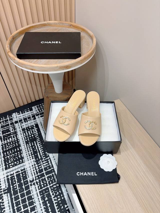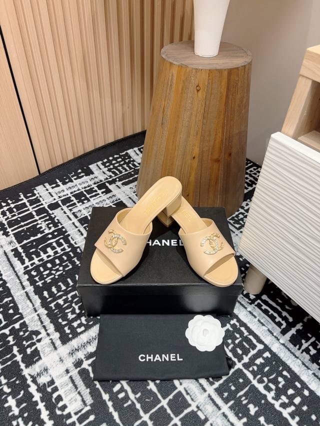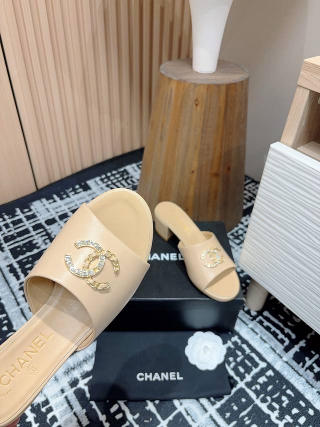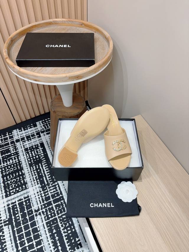 25Fw春夏新款chanel小香水钻双c一字拖鞋