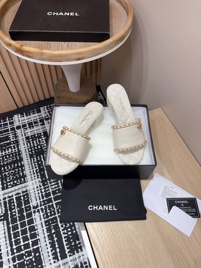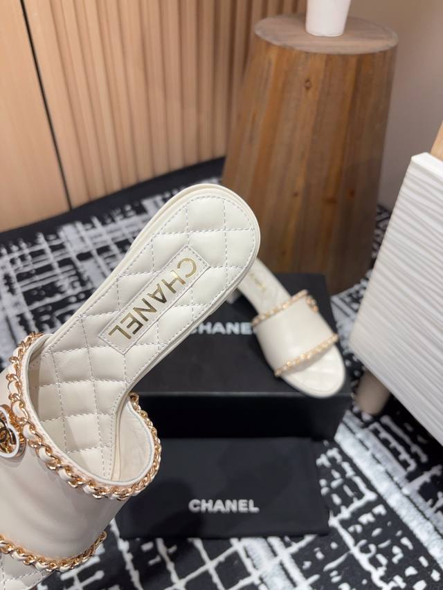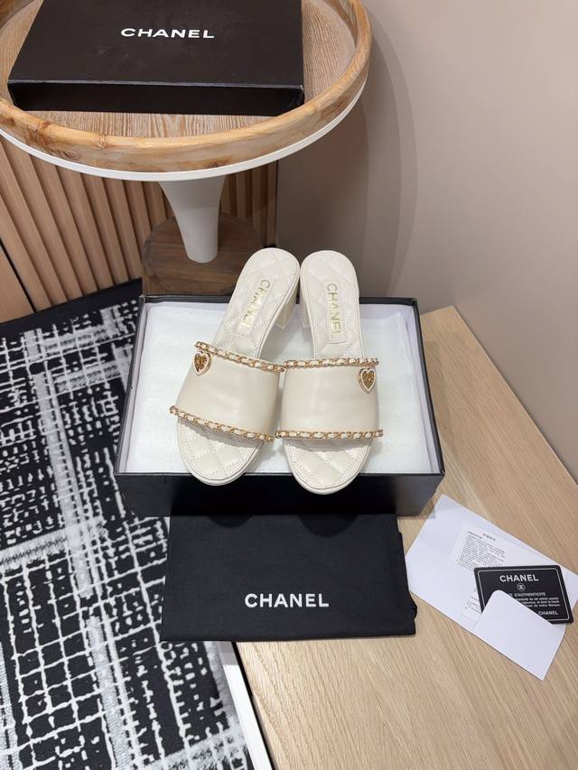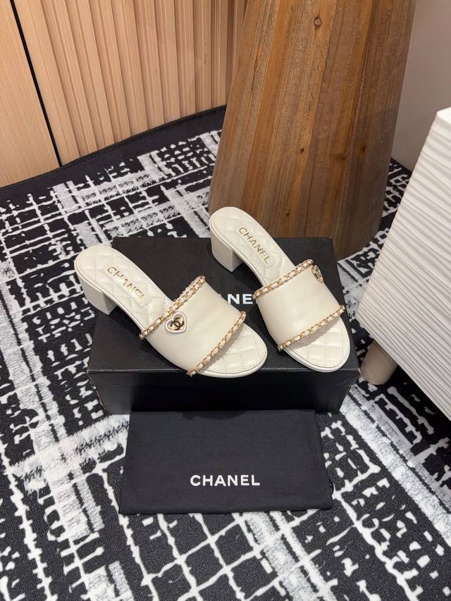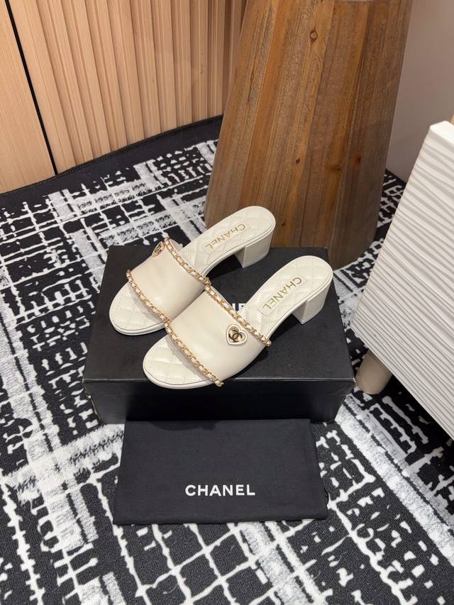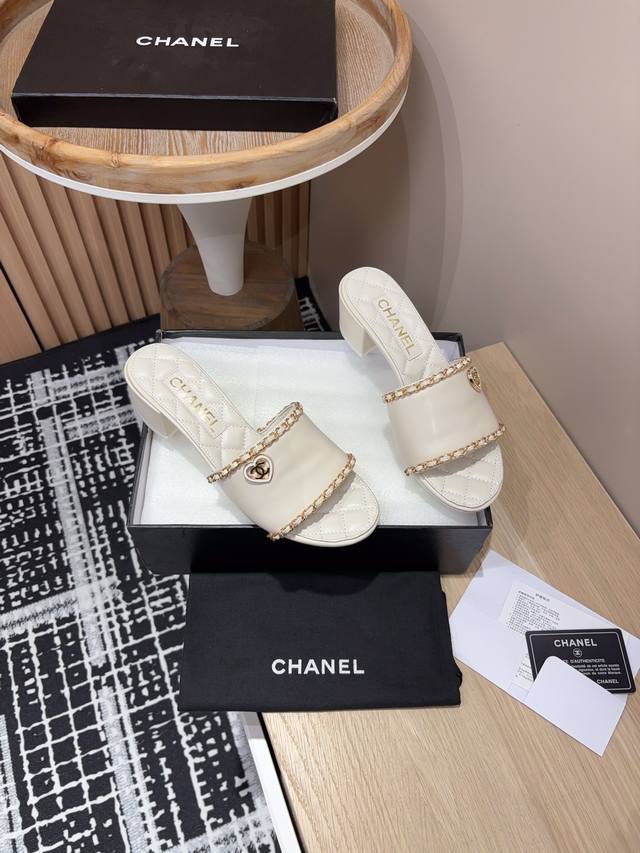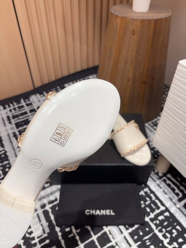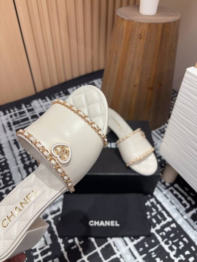 25Ss春夏新款chanel小香爱心链条一字凉拖鞋