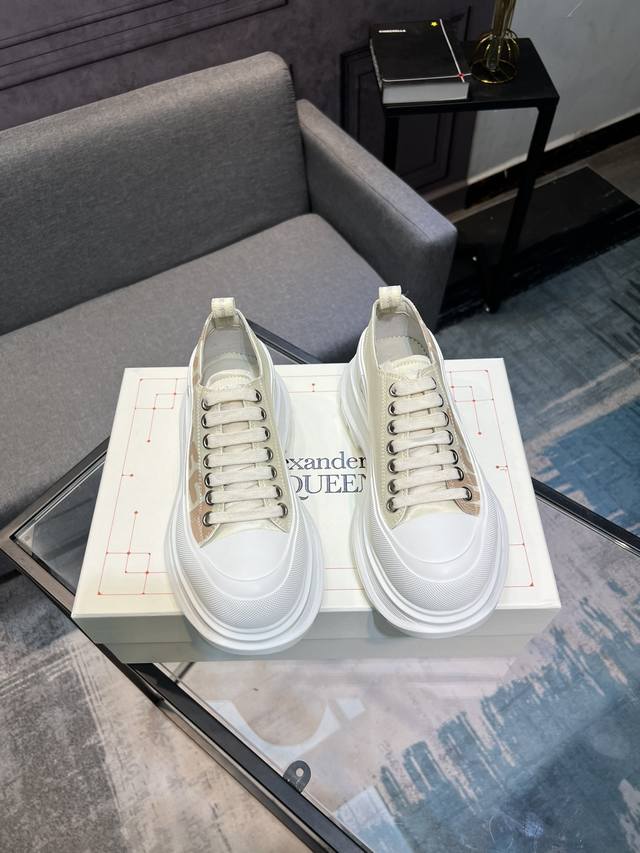 Alexander McQUEEN正品爆拆 1:1顶级麦昆原版皮料白色进口丝绸皮 原版白色鞋盒 布袋手提袋 全套包装、多送一副鞋带!后包工艺采用进口定型机热熔胶定型!完美正品复刻!- 麦昆 经典明星爆款百搭款回头率100%