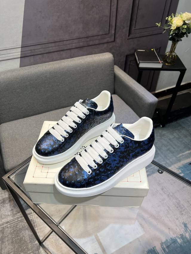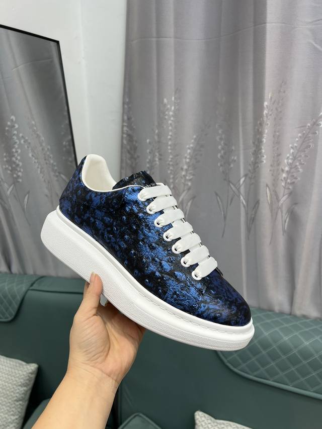 Alexander Mcqueen 麦昆 经典明星爆款百搭小白鞋,原版1:1复刻,新色不断更新,原版进口意大利头层牛皮,水染羊皮内里,垫脚超清晰高温空压logo,柔软的乳胶鞋垫,橡胶tpu抽真空气垫大底!厚底约45Cm,尺码:男38-44, 注意38,45定做~