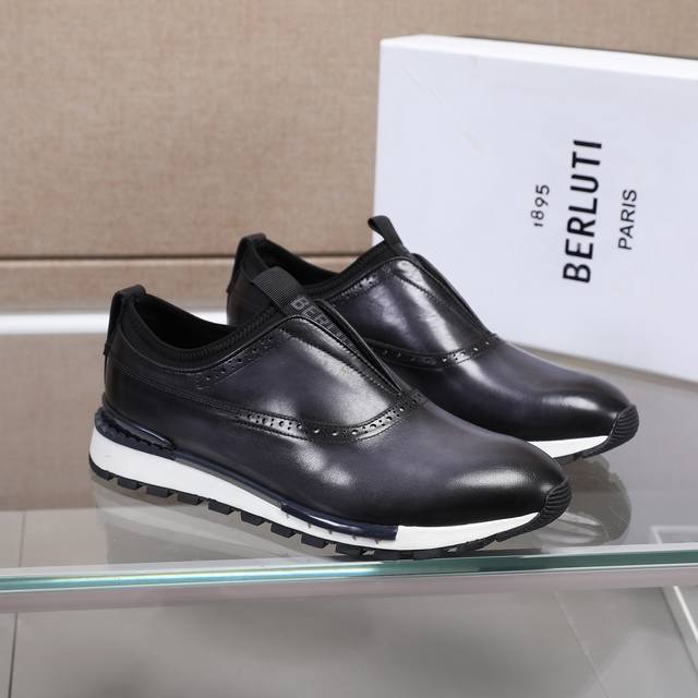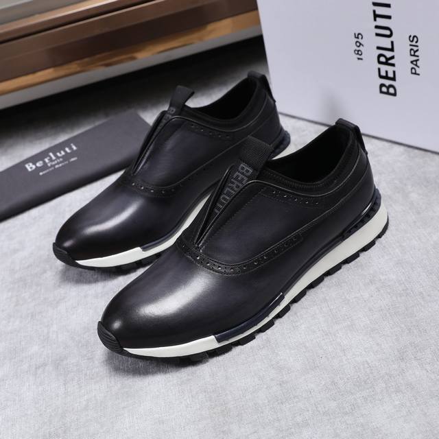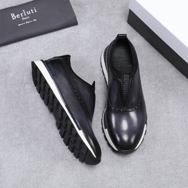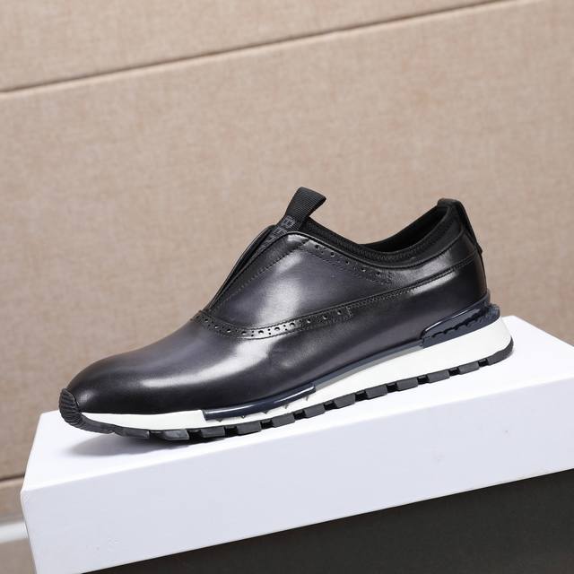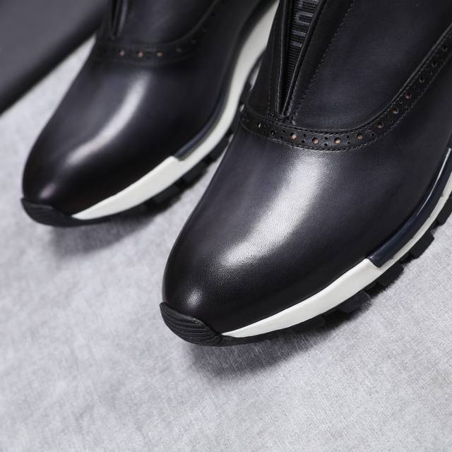 Ber* 高端精品男士运动鞋,意大利进口擦色手绘皮胚,古法手工染色工艺,内里顶级牛皮,进口私模大底,线条简约,经典百搭!Size:38-44