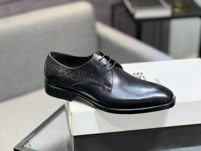 berlut* 布鲁提新款男士手工擦色正装皮鞋|甄选优质进口小牛皮鞋面|手工擦色工艺处理效果|鞋面饰以不对称 Scritto 图纹刺青彰显着berlut* 的细节与精神传承|半固特异冷粘工艺古朴大气|将皮料质感展现得淋漓精致|手工改色擦色特色|内里水染小牛皮 意大利真皮大底后跟加入橡胶底片防滑效果极好|搭配原版私模徽章鞋拔|原版定制包装发售
