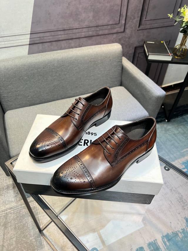 / Berlut* 布鲁提新款男士手工擦色正装皮鞋|甄选优质进口小牛皮鞋面|手工擦色工艺处理效果|鞋面饰以不对称 Scritto 图纹刺青彰显着berlut* 的细