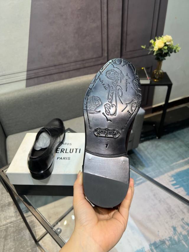 / Berlut* 布鲁提新款男士手工擦色正装皮鞋|甄选优质进口小牛皮鞋面|手工擦色工艺处理效果|鞋面饰以不对称 Scritto 图纹刺青彰显着berlut* 的细