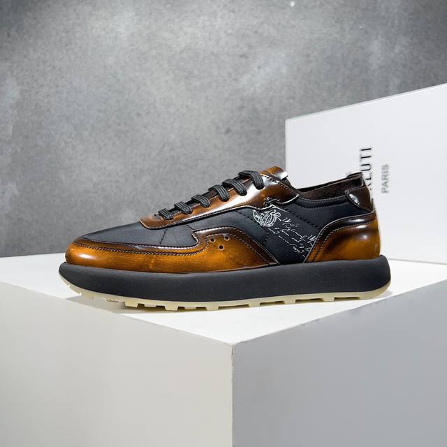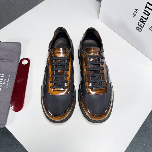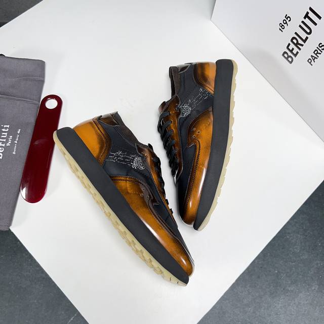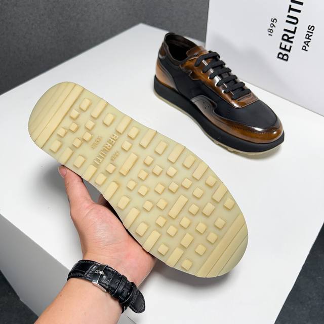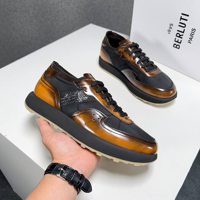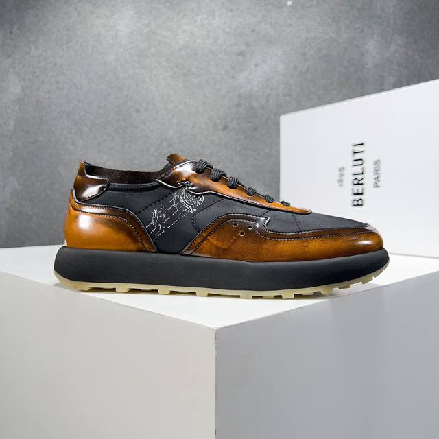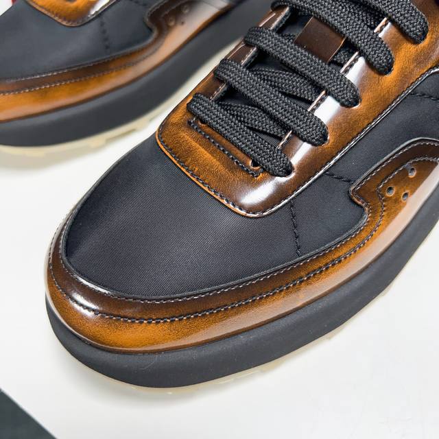 Berlut* 布鲁提春夏新品 轻盈track反毛皮革与尼龙运动鞋 官方售价 Rmb ,400 采用进口反毛皮拼接尼龙布材质制作 横向缝线 Scritto图纹立体打印图案 背面与鞋舌转色效果小牛皮 高弹压索独家定制活动牛皮垫脚 舒适透气款 踏青、日常穿着都是极其不错的选择 独家开模tr轻质发泡大底 对比色橡胶底片组合 汇集尼龙鞋面和超轻鞋底 一抹亮色注解出众态度 超级轻~ 喜欢的不要错过
