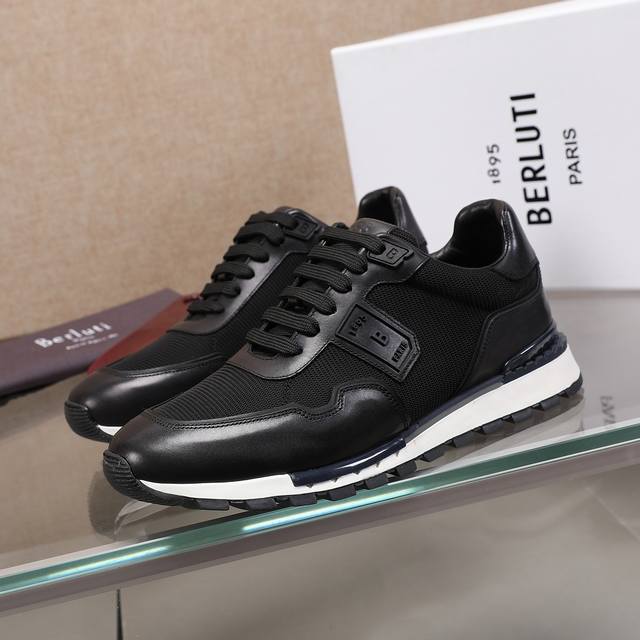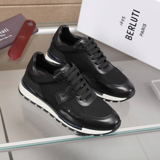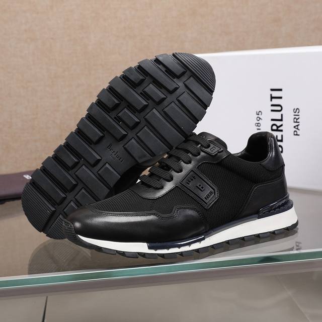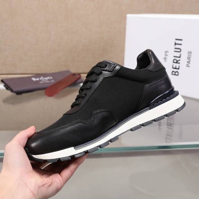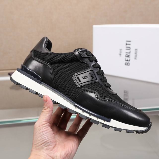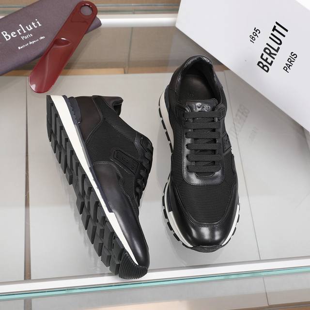 Berlut* 布鲁提 全新系列 Sport Track皮革与尼龙低帮运动鞋 官方售价rmb ,800 此款运动鞋采用意大利进口牛皮胚拼接科技网布打造 手工改色擦色匠心打造 内里水染牛皮 独立一体牛皮回弹垫 富含细节 1895注塑标识,鞋舌立体压印b字logo 黑白双色原版大底 鞋底极富运动风格,鞋头呈弧状,嵌线与鞋跟色彩形成鲜明对比 搭配fast Track翩然登场,表达个性年轻的时尚态度和别出心裁的运动情怀 标准皮鞋码数:38-44 可订45 46 47