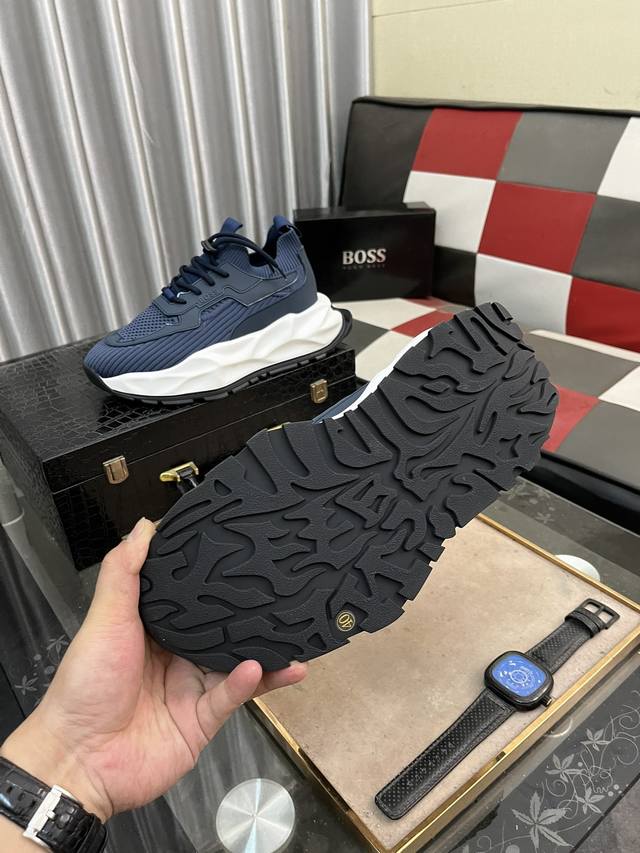 BOOS 男鞋休闲鞋原单品质鞋面采用进口小牛皮,超透气舒适内里做工精细,高端大气。有时尚典范造型。发泡透明耐磨大底,穿着舒适,值得拥有。码数:38–445色可
