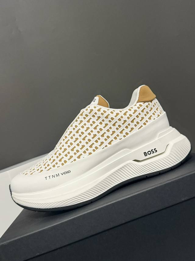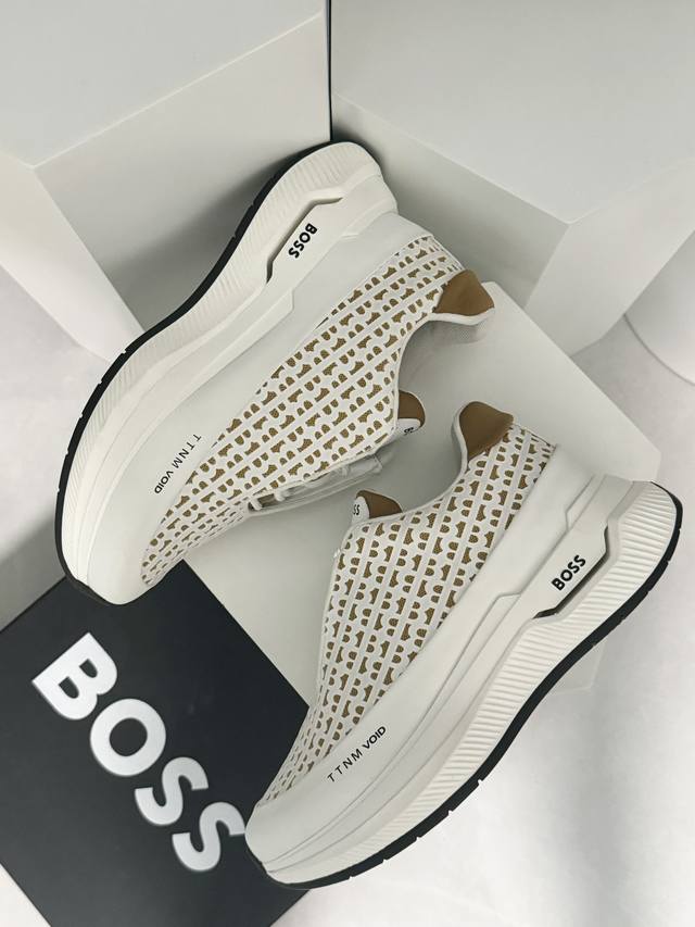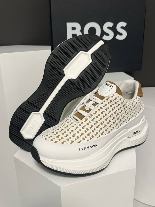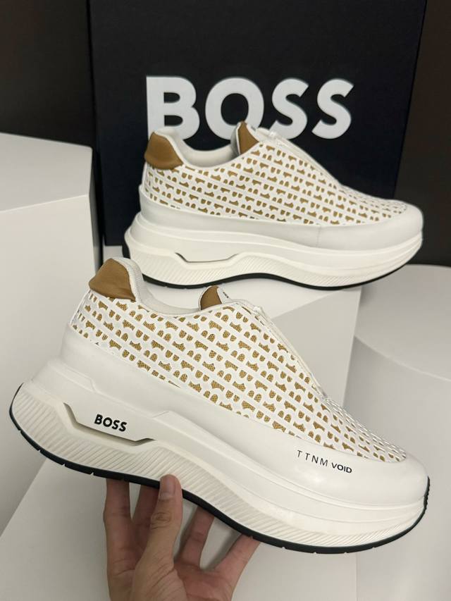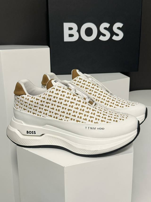 Boss动感男款厚底运动鞋,优雅低调而又蕴藏轻盈活力。精选内皮搭配高弹力飞织!饰有品牌标识,前卫厚鞋底设计。层次感和科技感十足,让人眼前一亮的时尚单品。