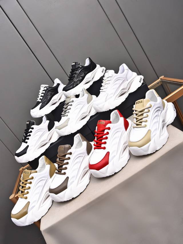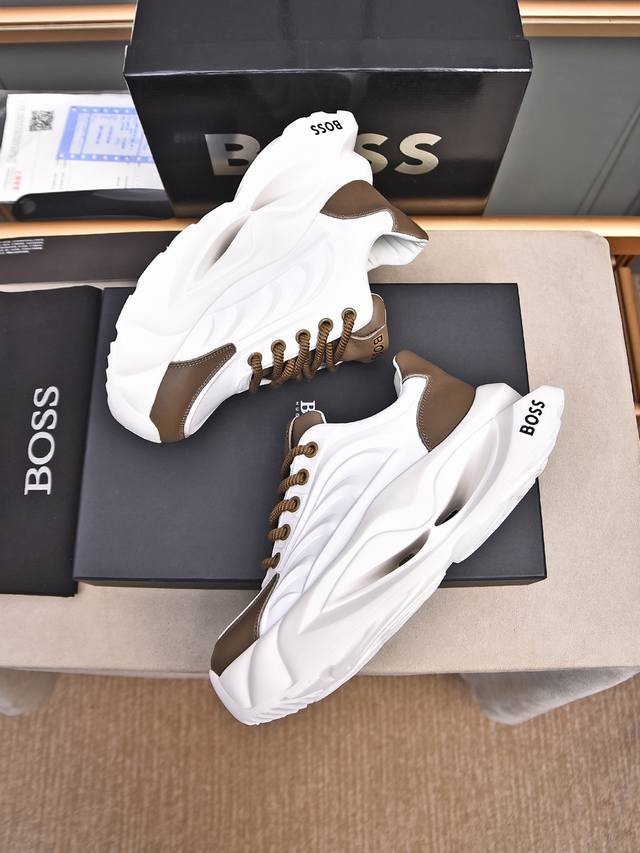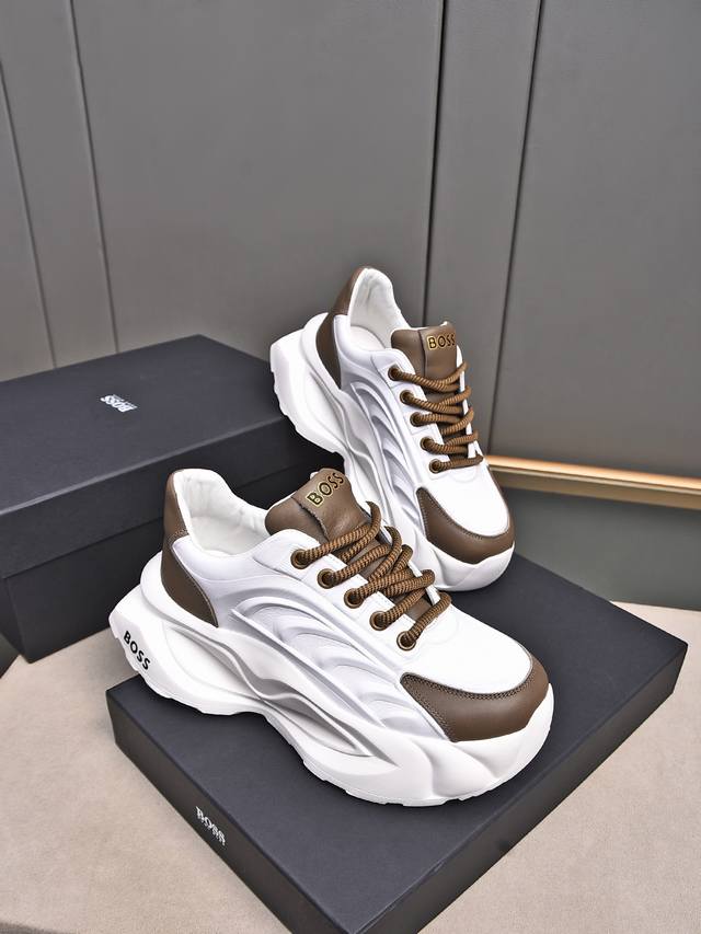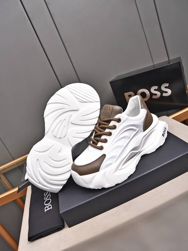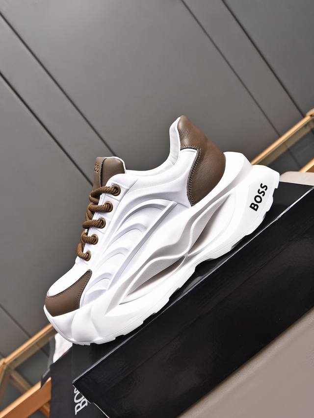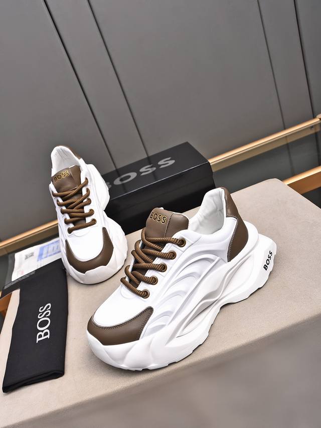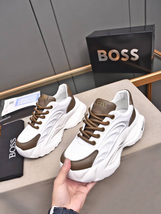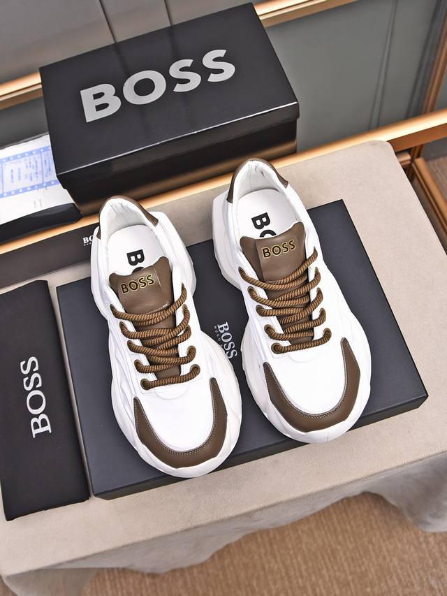 Boss款式新颖时尚,鞋面采用进口牛皮拼色,牛里,超轻超耐磨发泡大底!高端大气上档次!让人眼前一亮!皮质柔软细腻光泽透亮,彰显极致纯手工工艺,牛里!上脚柔软舒适透气!Size:39-44 38 45定制