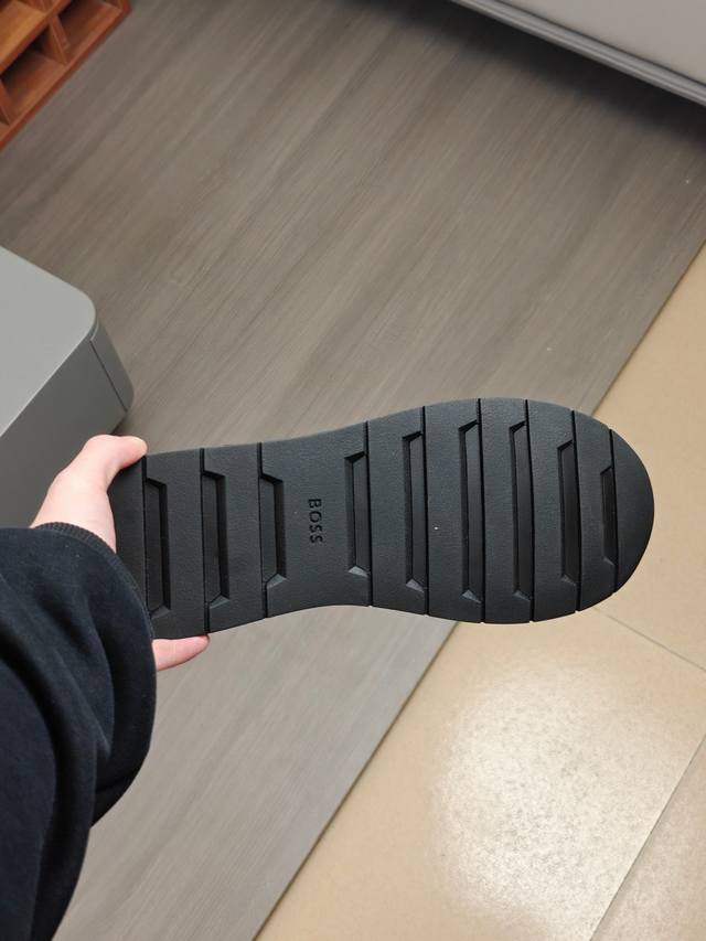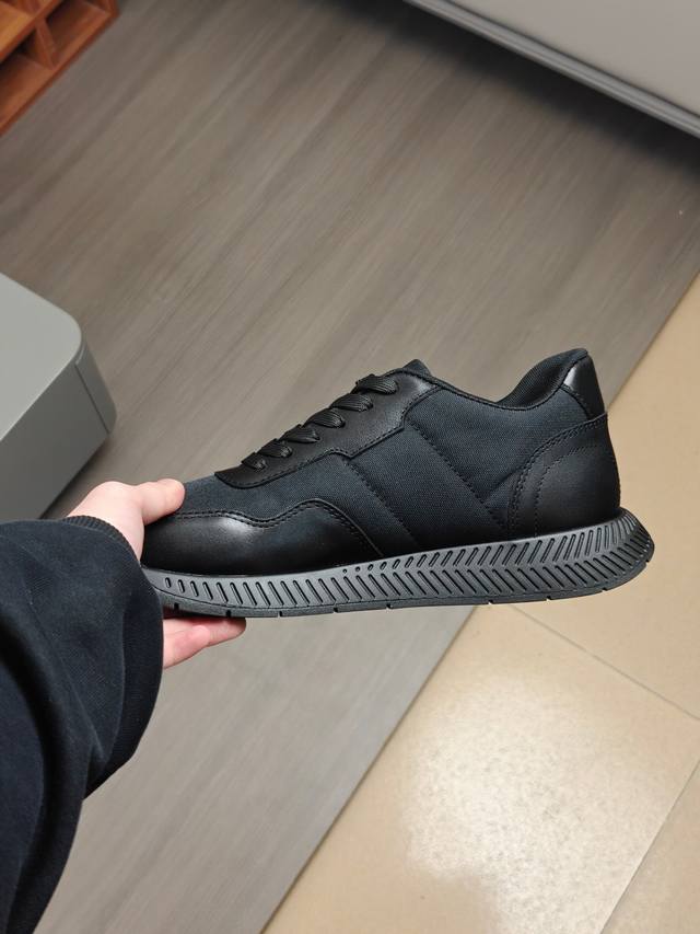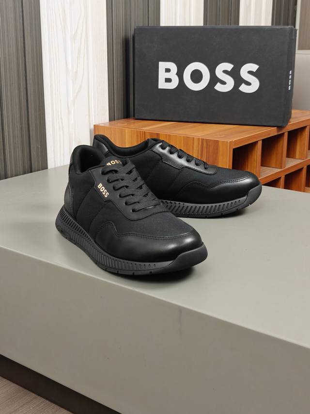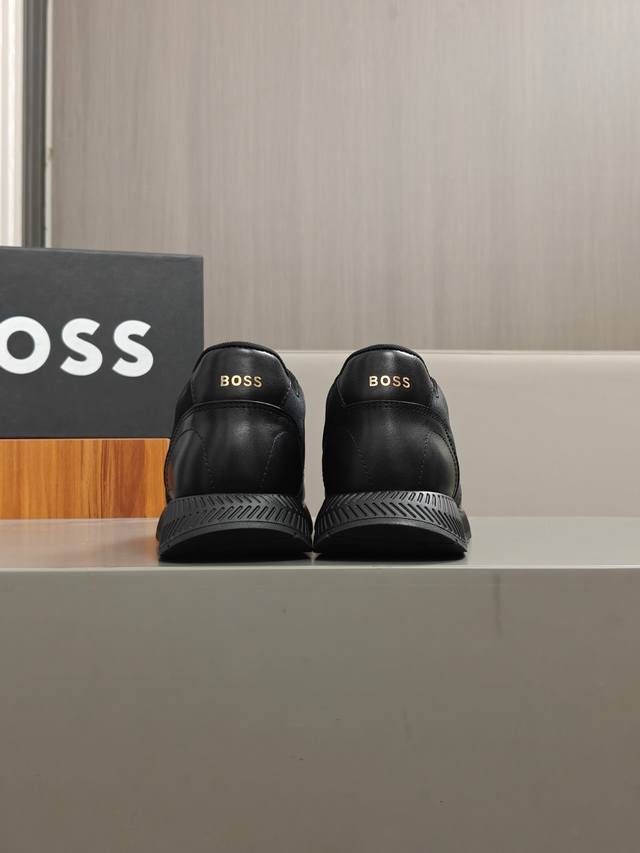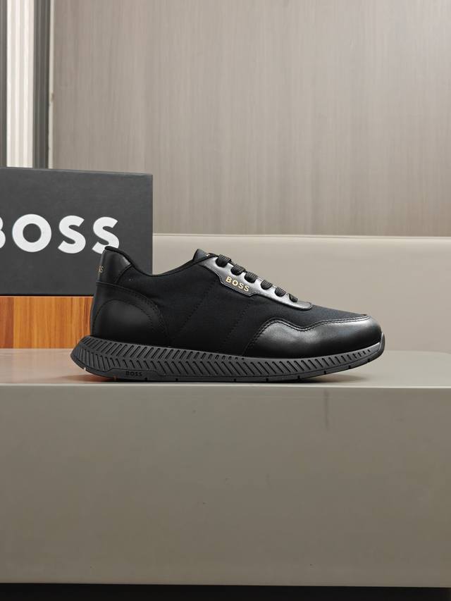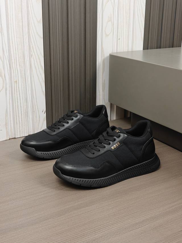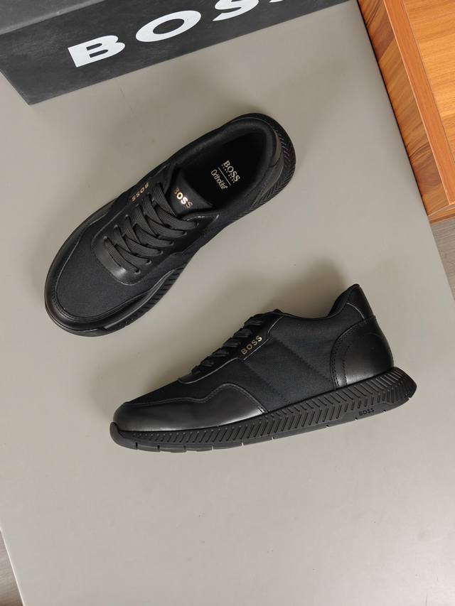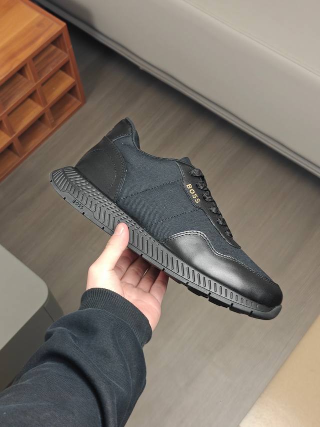 Boss男士休闲运动鞋,原版开模,鞋面采用意大利进口小牛皮拼接飞织网面材质,上脚柔软舒适 TPU大底脚感轻便!