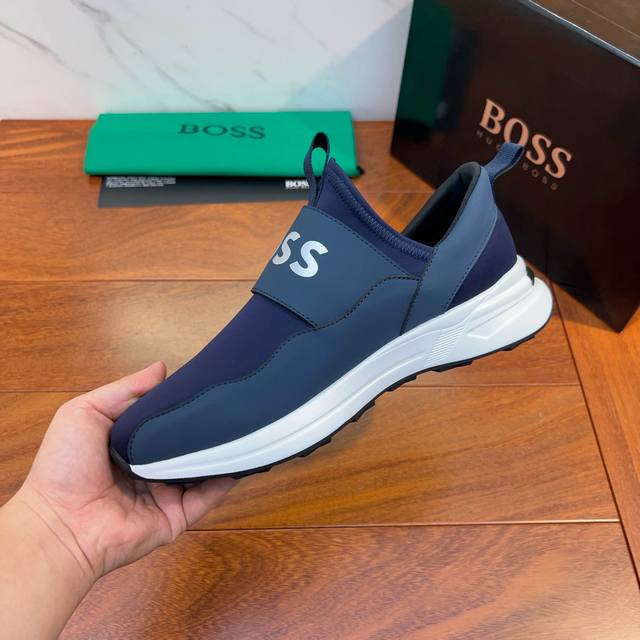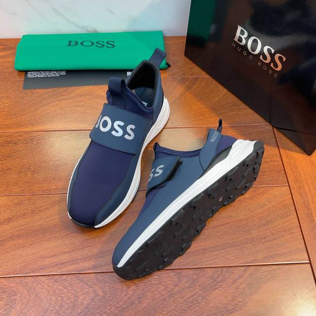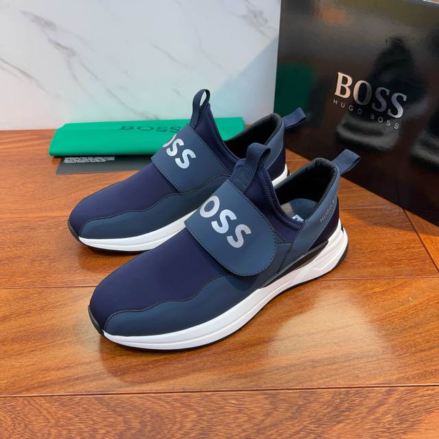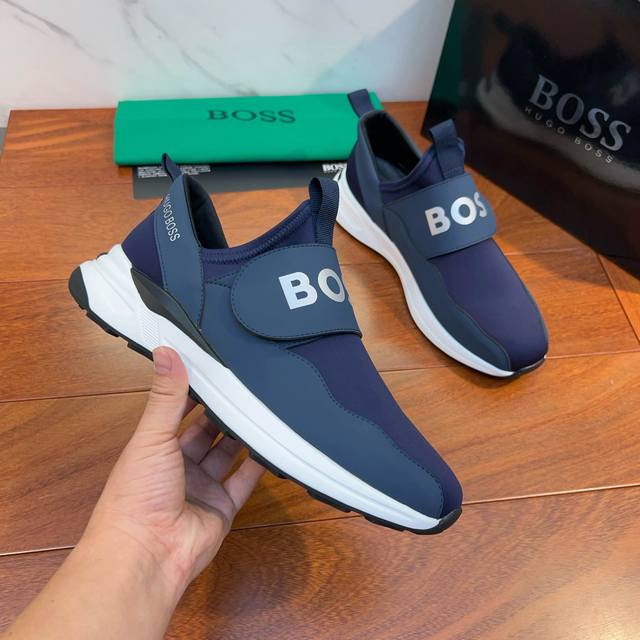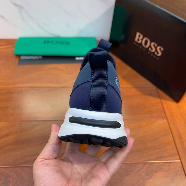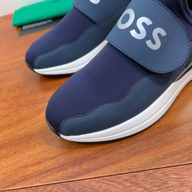 BOSS 出品复古风运动鞋,选用混合面料设计而成,头层牛皮饰边、徽标细节和双色外底 ,38-45码 帮面材质:牛皮 织物面料