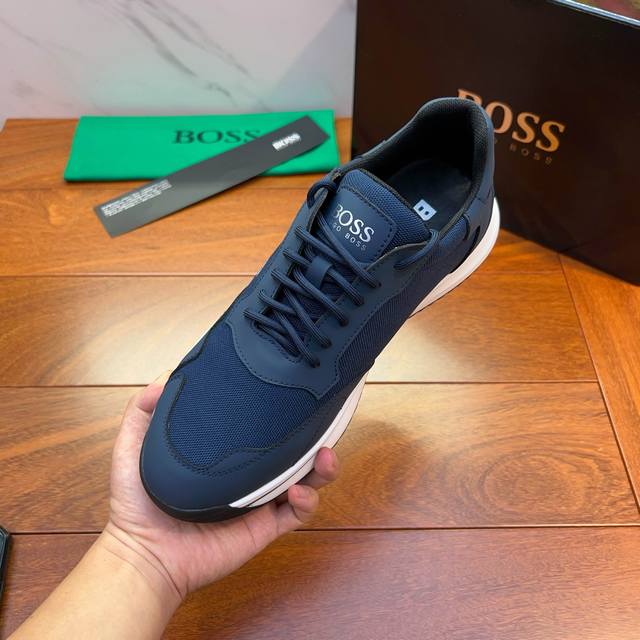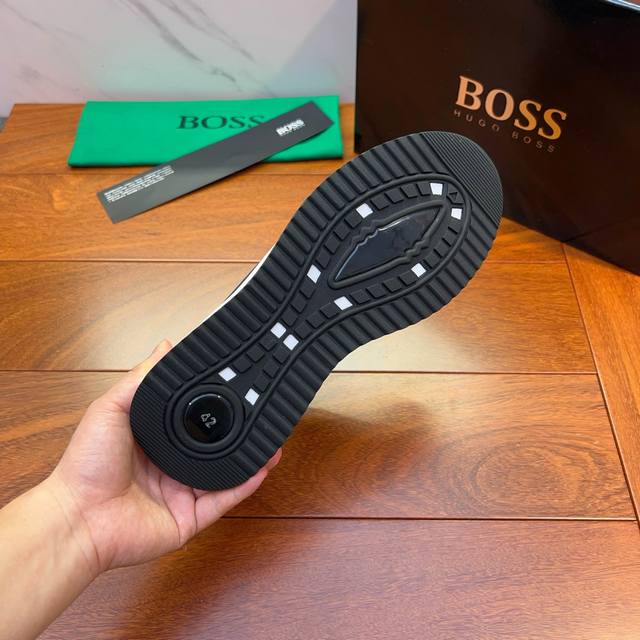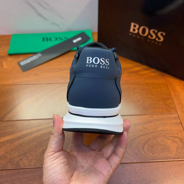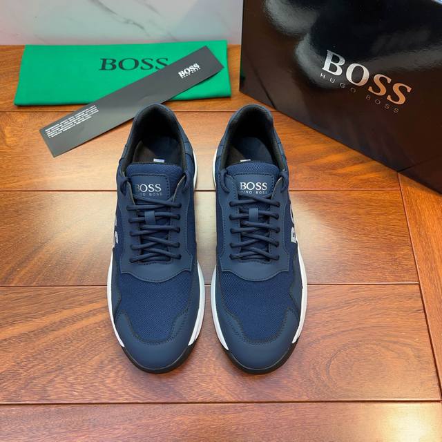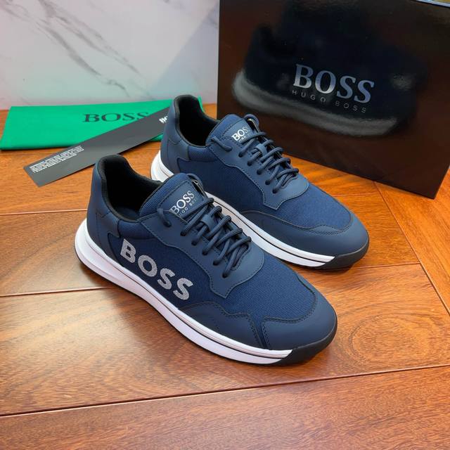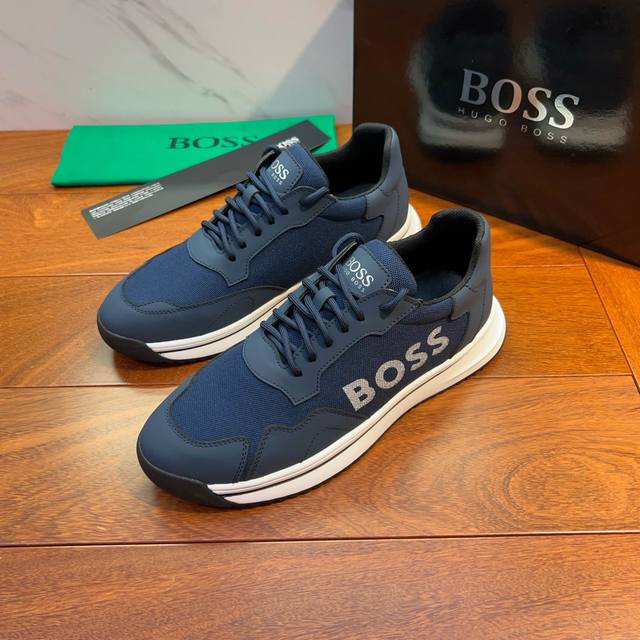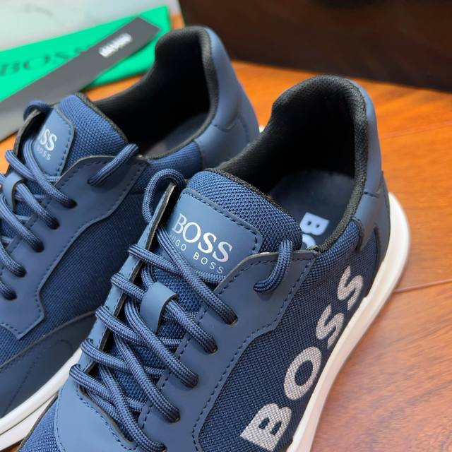 BOSS 出品复古风运动鞋,选用混合面料设计而成,头层牛皮饰边、徽标细节和双色外底 ,38-45码 帮面材质:牛皮 织物面料