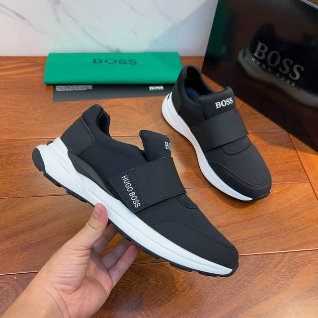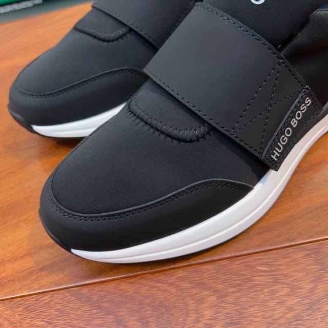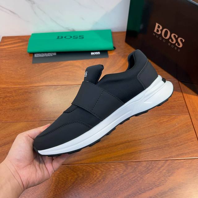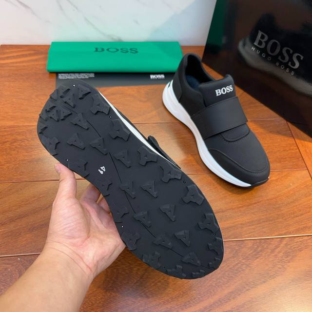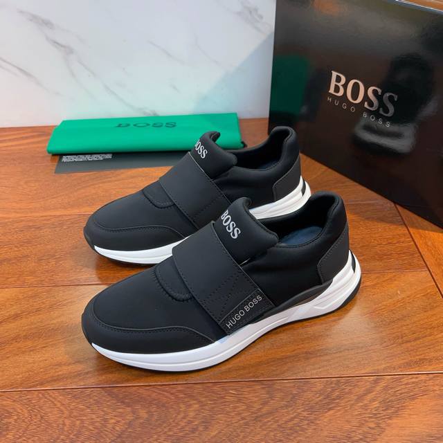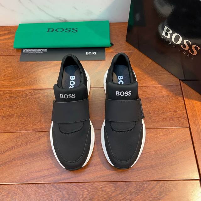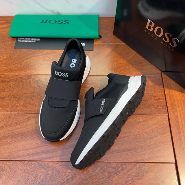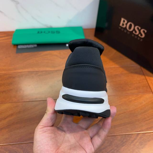 Boss 出品复古风运动鞋,选用混合面料设计而成,带人造皮革饰边、徽标细节和双色外底 ,38-45码帮面材质:合成革 弹力布面料