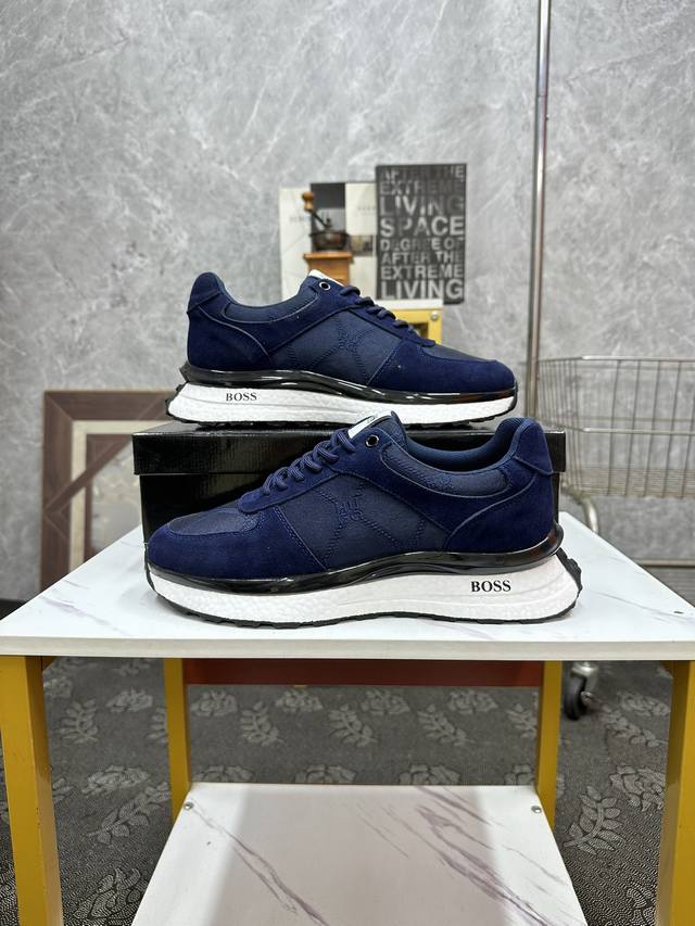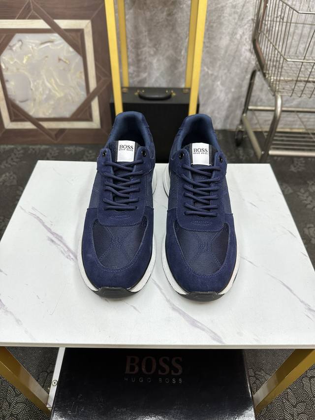 工厂价 Boss 男士新款休闲鞋同步更新 知名品牌新款隆重上市 以奢华高端设计出货 鞋面采用品牌印花皮料,羊皮垫脚...