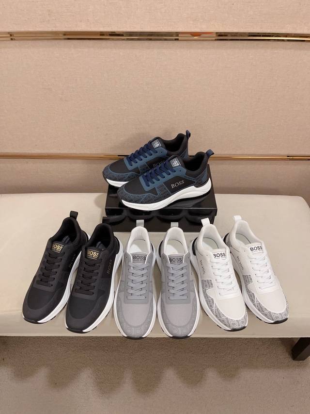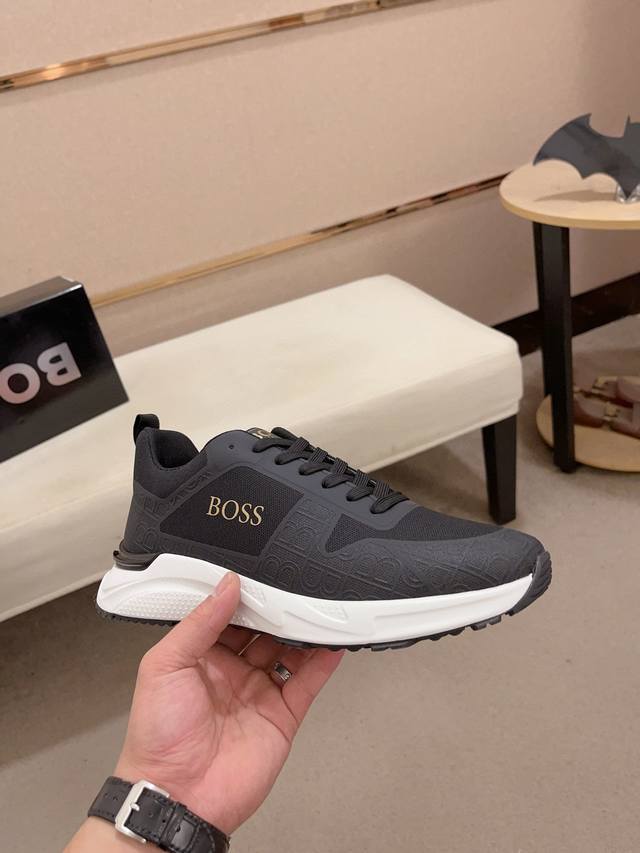 BOSS 最新休闲男鞋,欢迎1:1对比,爆单款BOSS香港专柜休闲鞋,专柜品质,支持验货,优质做工,鞋面采用意大利进口飞织面料,透气羊皮内里,原版时尚运动大底