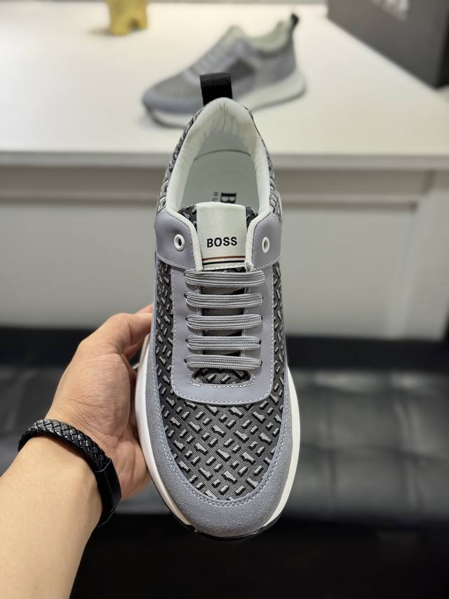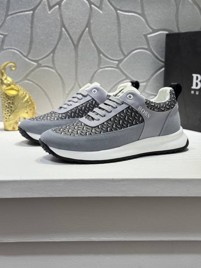 / boss 运动男鞋,本款是官方主打经典款,1:1质量,原厂名师制作,采用牛皮拼接帆布舒适透气网布内里。完美楦型,大方时尚的设计,吸引了众多消费者的追捧,适合司机