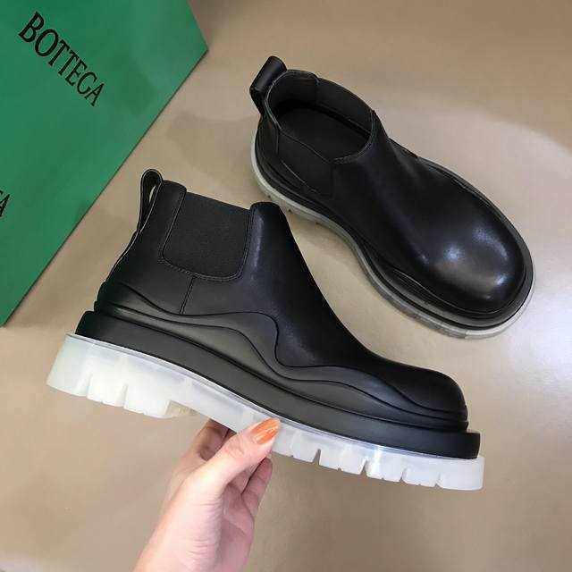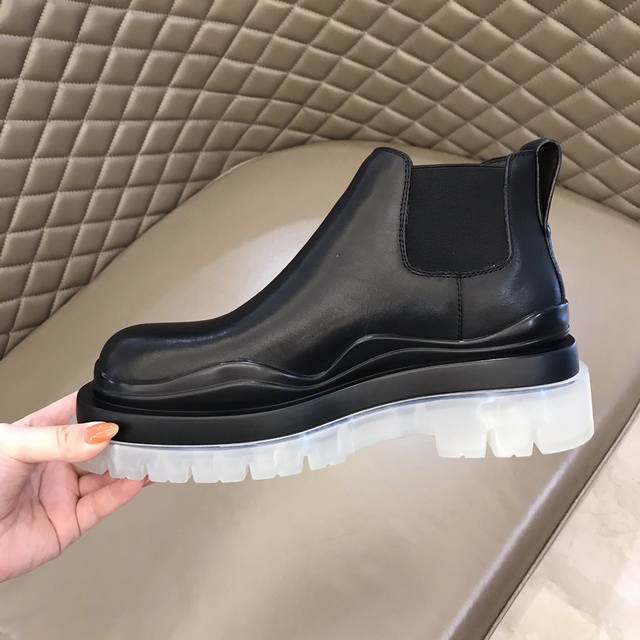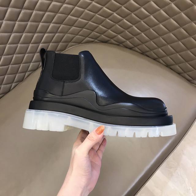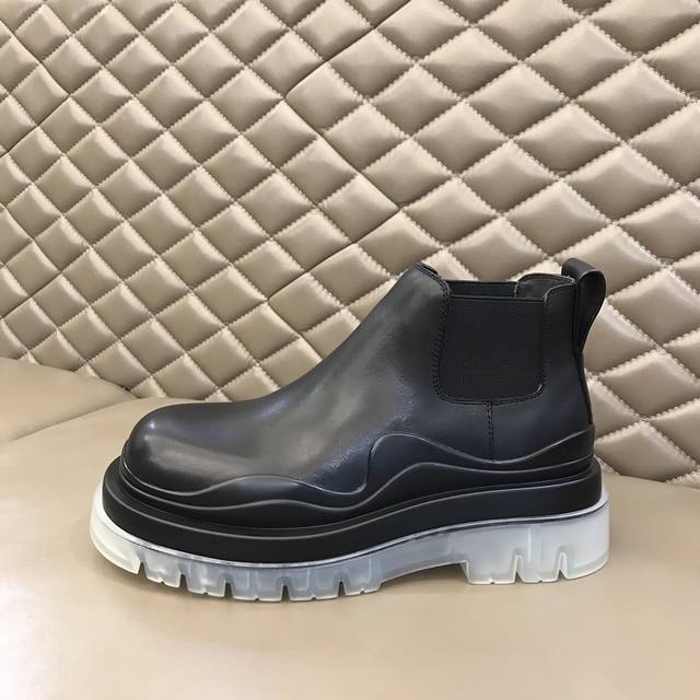 bottega venet* 秋冬情侣中帮厚底圆头短靴,原版开发顶级牛货,选用优质进口头层牛皮,头层牛里牛垫、弹性侧面饰片和皮革袢扣、私模波浪纹原版大底,内部车