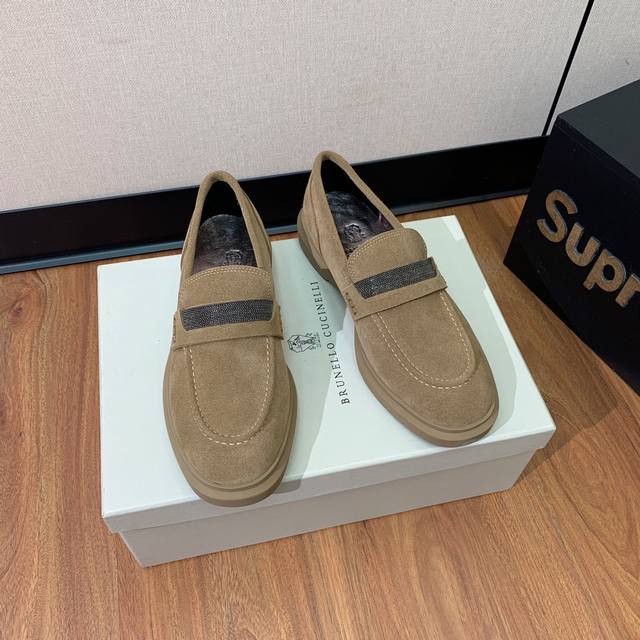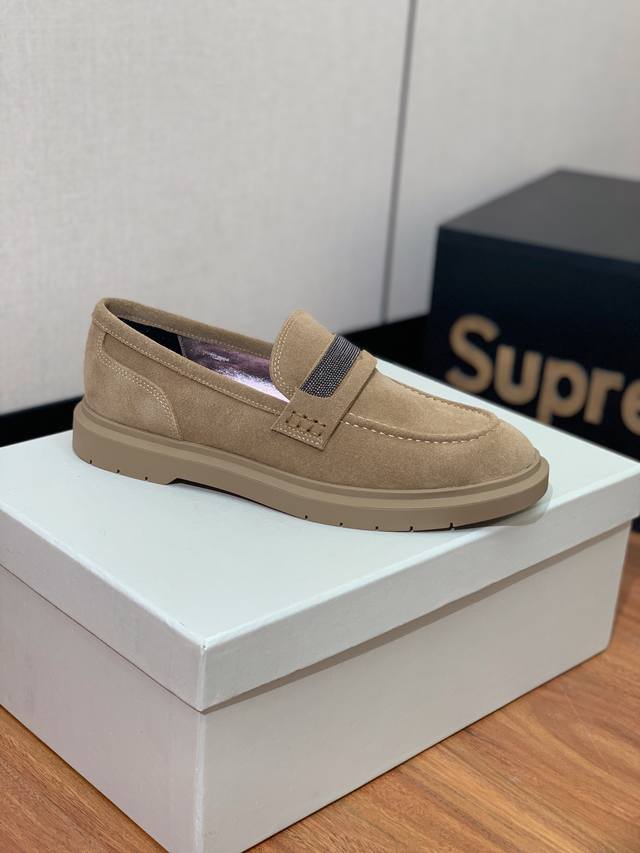 Brunell* Cucinell* 乐福鞋 经典灵感定义了这款鞋的现代优雅风格 鞋面牛反绒,羊皮内里及垫脚 原版开模五金,定制大底