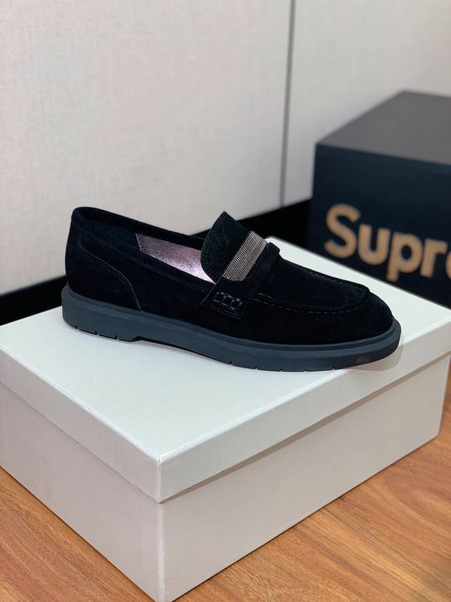 Brunell* Cucinell* 乐福鞋 经典灵感定义了这款鞋的现代优雅风格 鞋面牛反绒,羊皮内里及垫脚 原版开模五金,定制大底码数:35-41 40、41