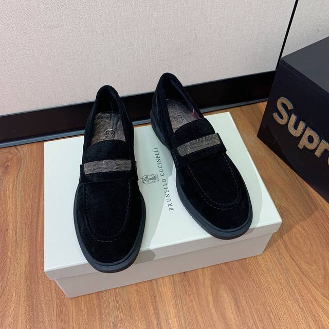 Brunell* Cucinell* 乐福鞋 经典灵感定义了这款鞋的现代优雅风格 鞋面牛反绒,羊皮内里及垫脚 原版开模五金,定制大底
