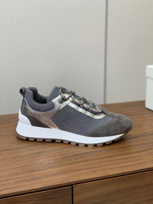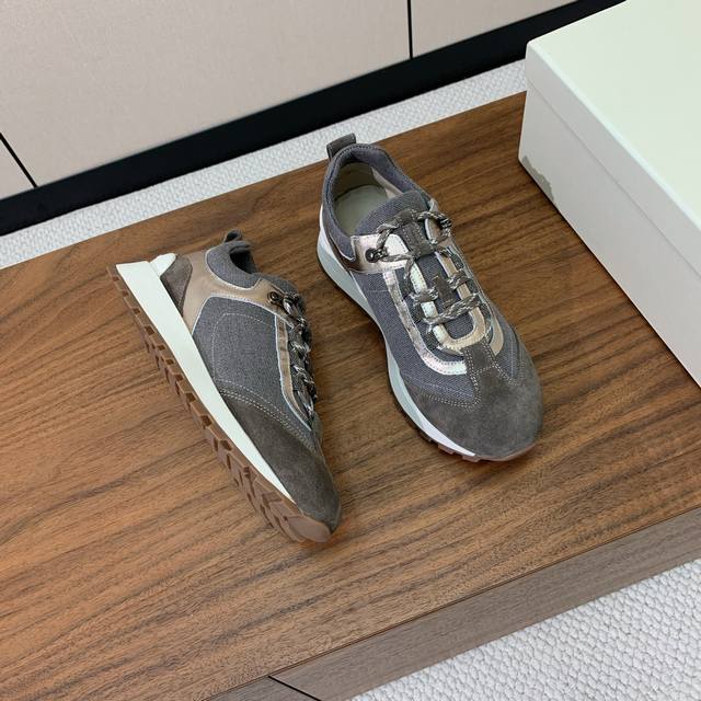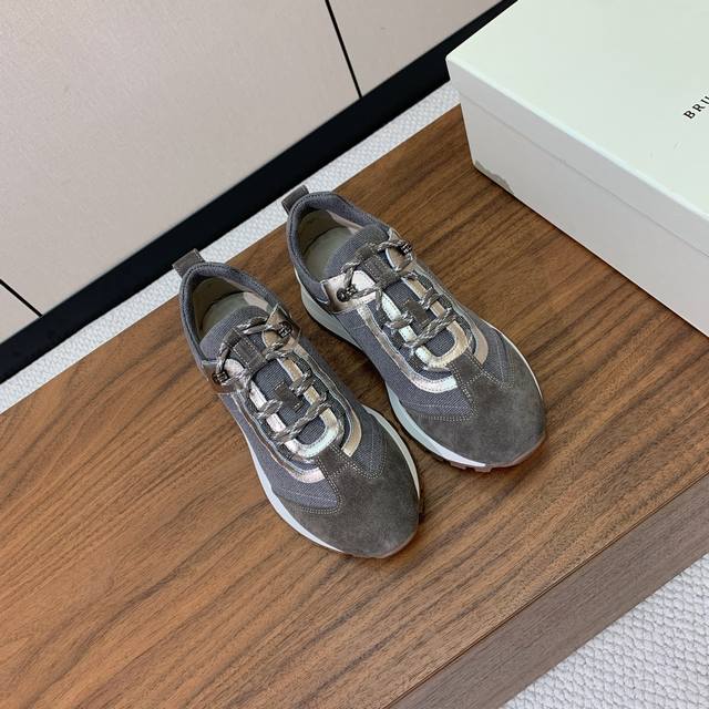 Brunell* Cucinell* 新款休闲运动鞋 鞋面采用进口牛绒纯手工串联珠链配饰!内里垫脚是高密斜纹棉布,原版开模大底!上脚超舒适