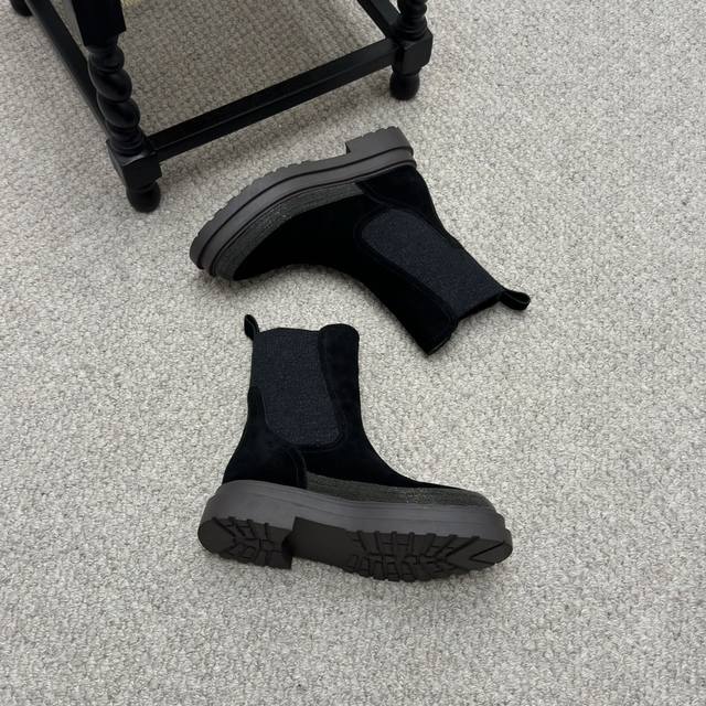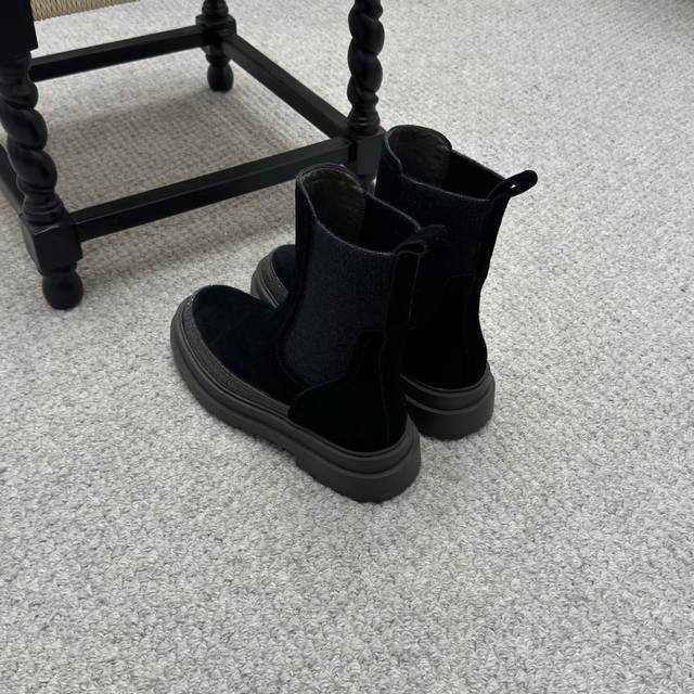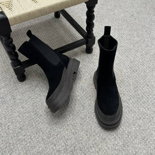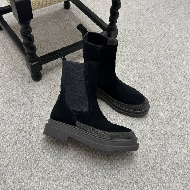 Brunello Cucinelli 2024秋冬bc新款中筒绑带马丁靴 机车靴子