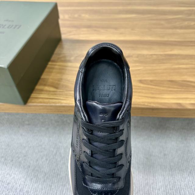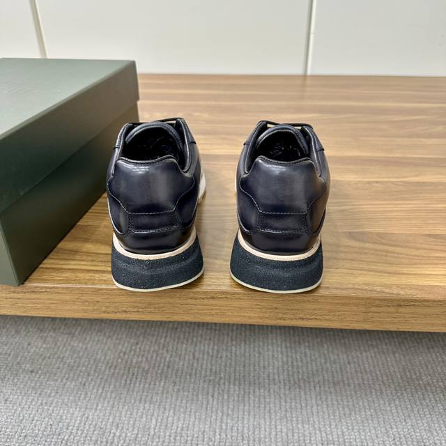此款系带浅口鞋采用进口开边珠雾面皮 进口牛皮手工擦色改色制作而成 是一款具有历史意义的标志性鞋履,成为berlut* 品牌的象征以及对其不妥协风格的最纯粹表达 意大利进口皮胚手工擦色 三节头拼接造型 双线压边拼接走线 流畅形线条 内里黑色水染小牛皮里 脚感亲肤细腻 原版大底 增强舒适度 鞋跟处有切边 真正的沿条结构。