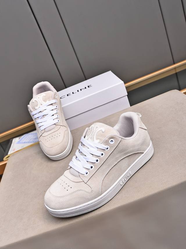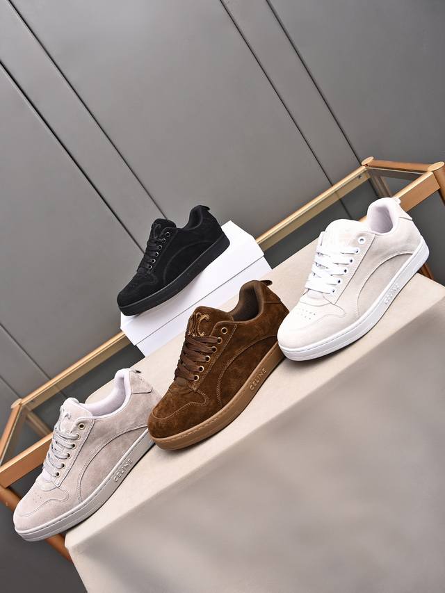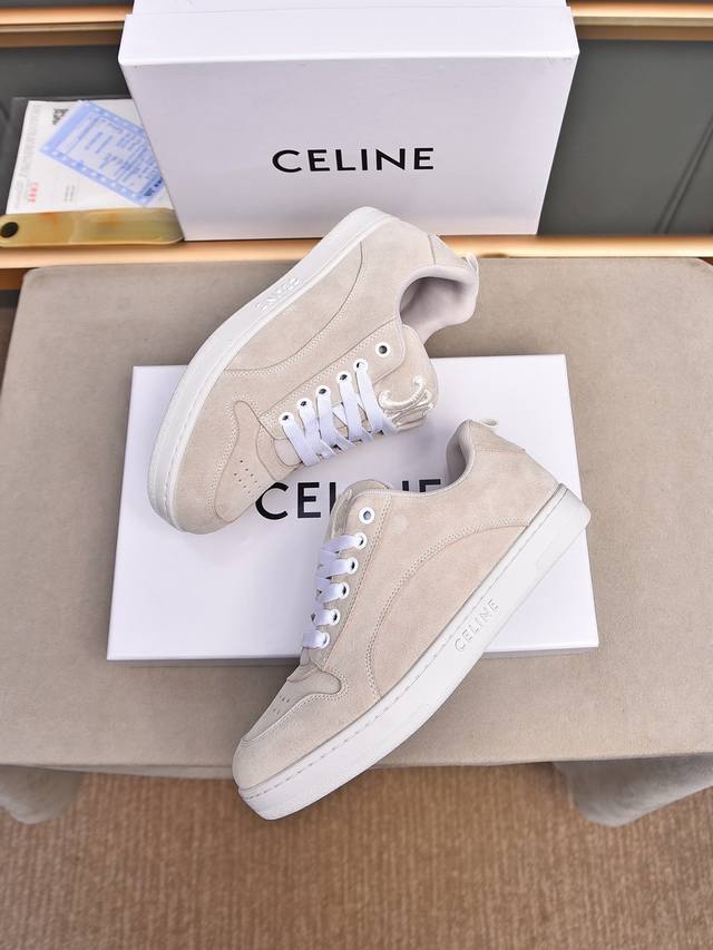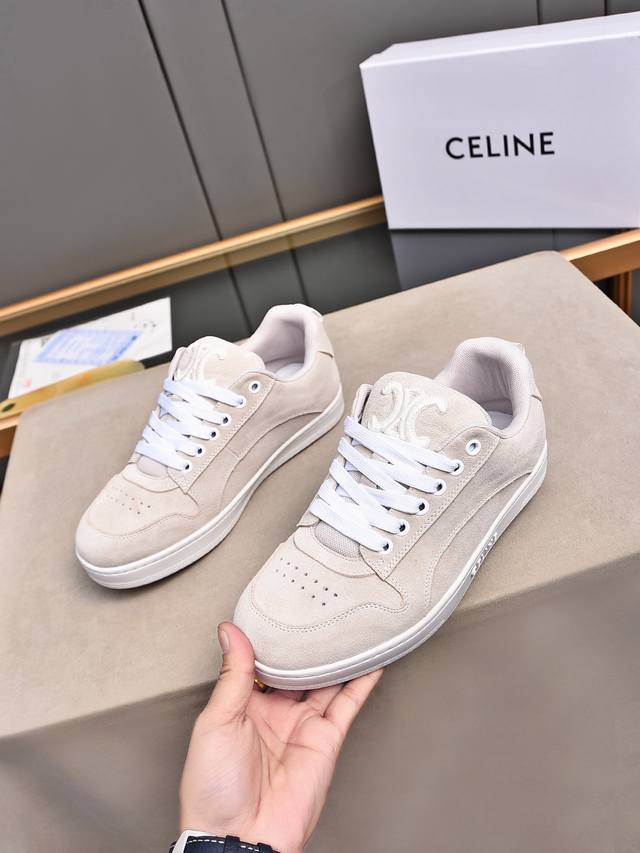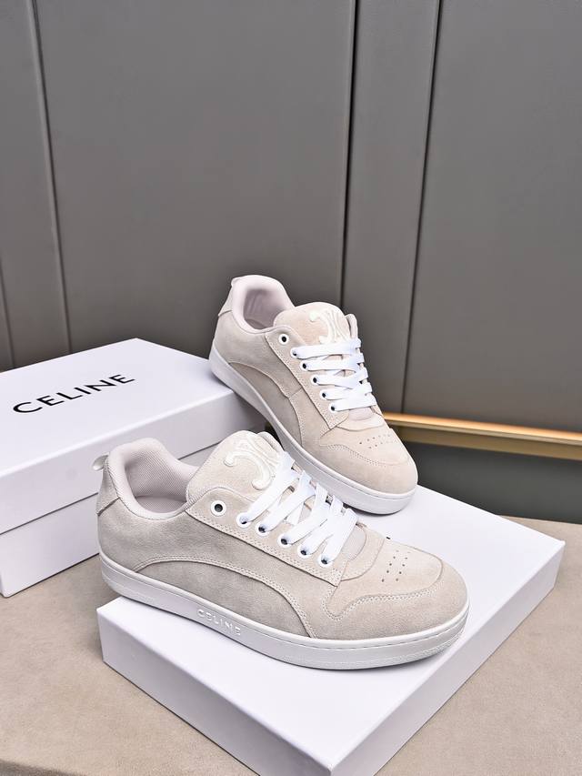 Celi Ne 赛林 2025早春休闲鞋无论从楦型的轮廓隔板的拼接都让人耳目一新、前后品牌logo相呼应、大底边位明显celine字母点缀、无不彰显品牌元素、鞋面头层磨砂牛皮+透气网里!私模橡胶大底 !38-44 45订做 4色选!