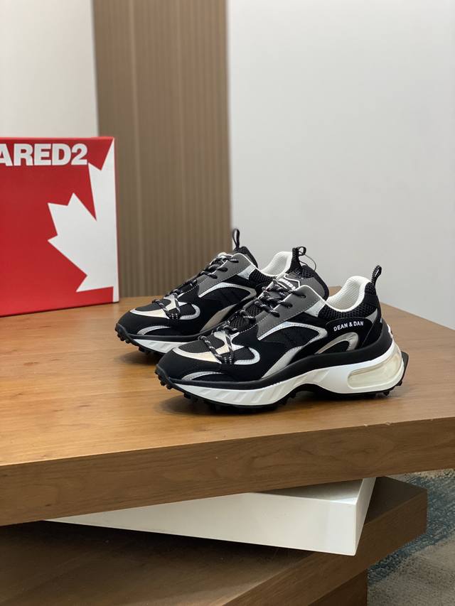 / D2次方男士运动鞋!原厂材料制作,鞋面使用多种材质拼接,时尚新颖,后置提鞋环,原版厚底增高气垫组合大底,大底造价非常昂贵,精品级别,时髦百搭单品!推荐入手! S