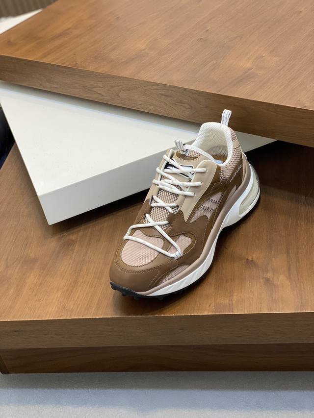 Boss 出品复古风运动鞋,选用混合面料设计而成,带人造皮革饰边、徽标细节和双色外底 ,38-45码帮面材质:合成革 弹力布面料