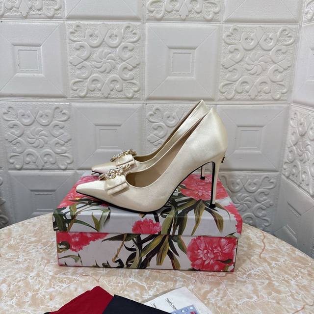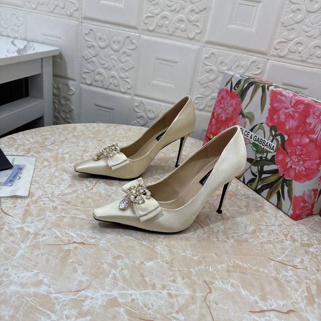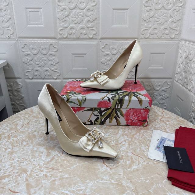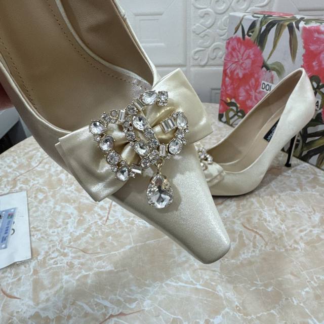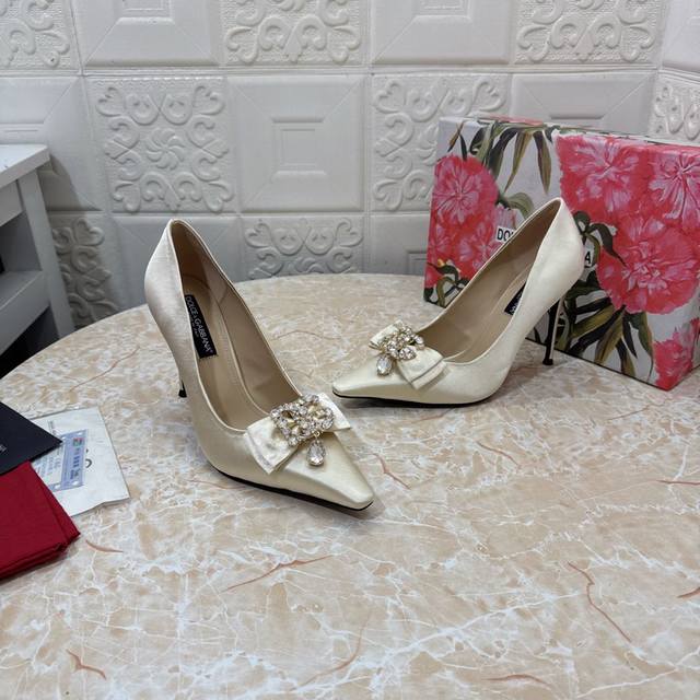 / Dg.顶级版本.高品质2024新款 1:1开模 蝴蝶结水钻装饰高跟鞋鞋面:真丝面料内里:羊皮跟高: 10.5Cm大底:A级原版黑色真皮大底码数:Size.34–