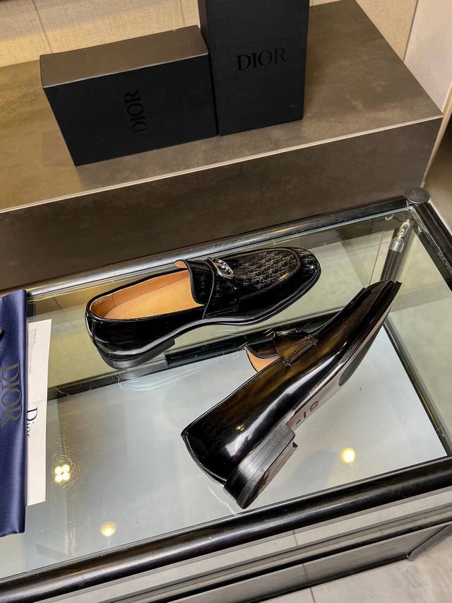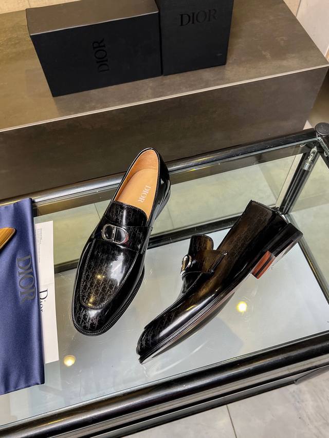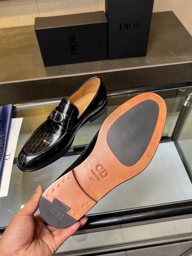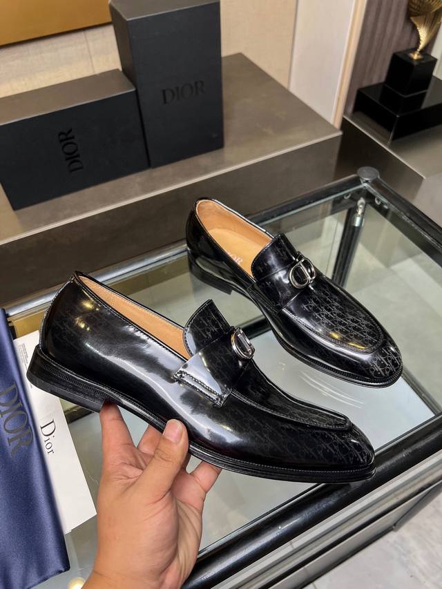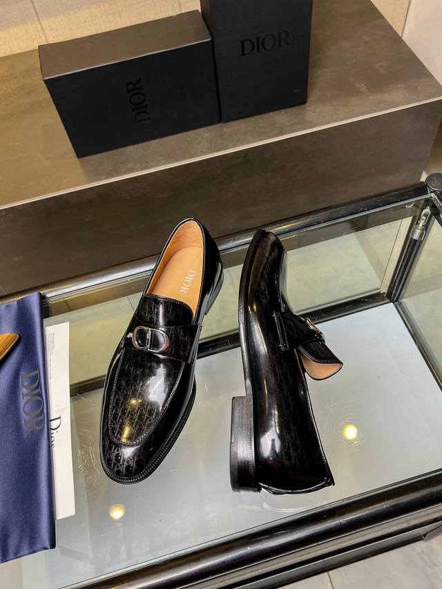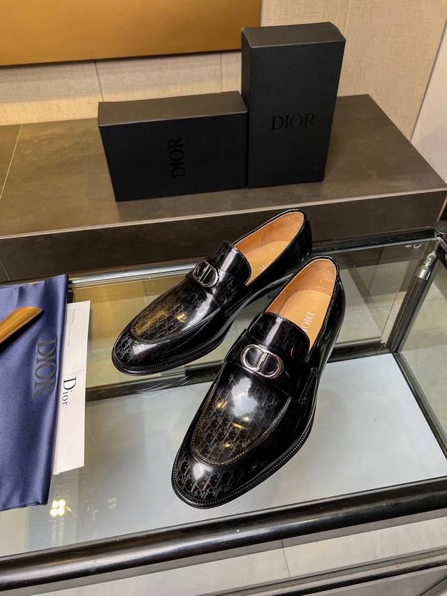 Timeless 乐福鞋体现经典的优雅气质 高雅的外观搭配修长的版型,精选进口材料黑色亮面牛皮革面,饰以渐变效果 Oblique 印花 内里垫脚均采用顶级吸汗透气牛皮,真皮大底皮革鞋底搭配防滑橡胶 舒适轻盈,高雅精致,可搭配各式西装 标准皮鞋码:3944 38.45.46可定做