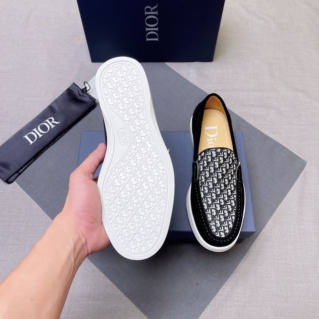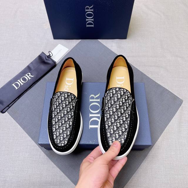 d~R男士经典乐福皮鞋,便鞋款式设计,方便穿脱。采用原版印花帆布拼接牛皮精心制作,与 Shawn Stussy 携手打造,饰以橡胶凹凸鞋底及黄铜和珐琅材质的 Dio* And Shawn 标志。可搭配休闲服装或西装穿着。