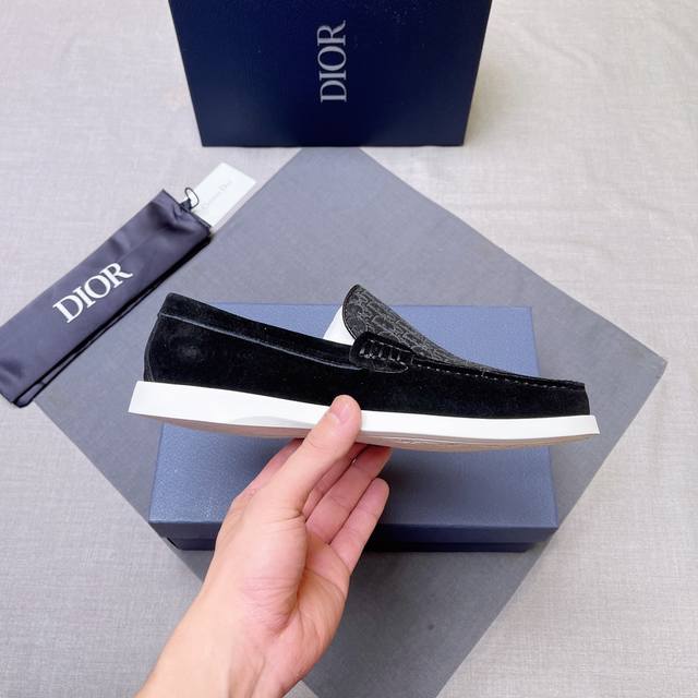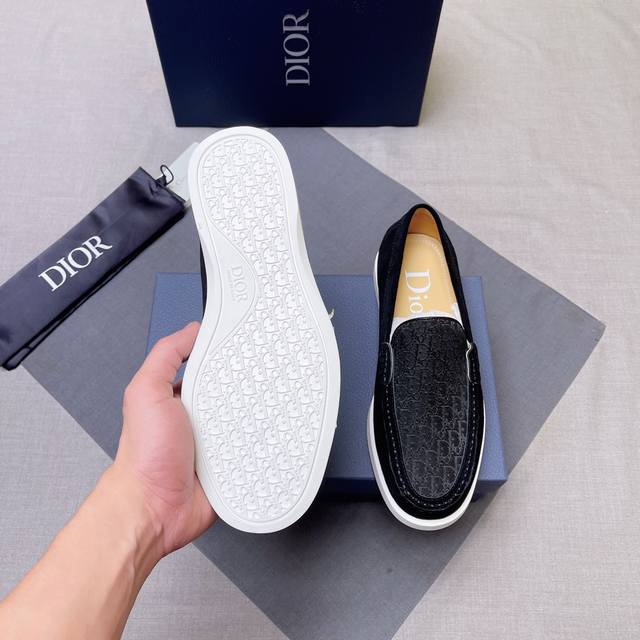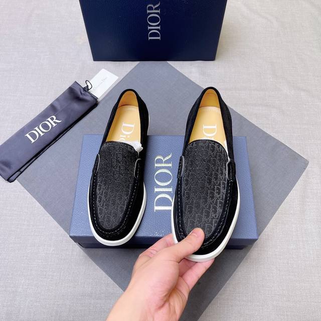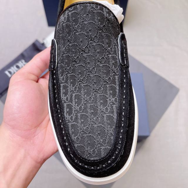 D~R男士经典乐福皮鞋,便鞋款式设计,方便穿脱 采用原版印花帆布拼接牛皮精心制作,与 Shawn Stussy 携手打造,饰以橡胶凹凸鞋底及黄铜和珐琅材质的 Dio* And Shawn 标志 可搭配休闲服装或西装穿着