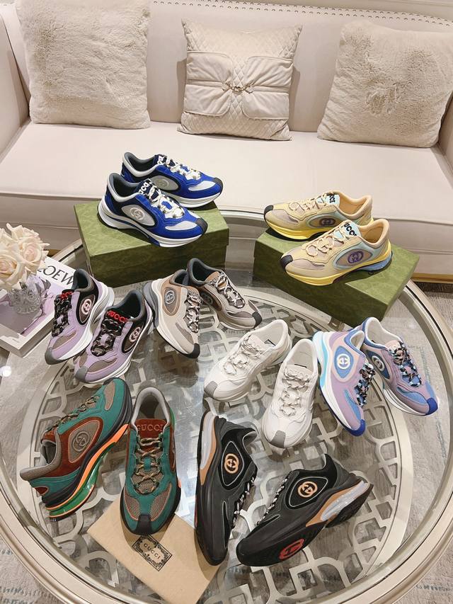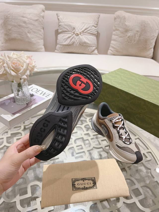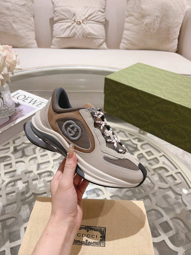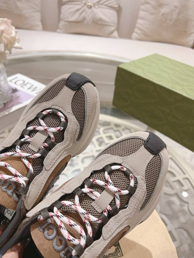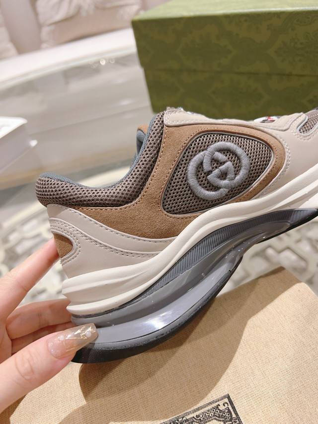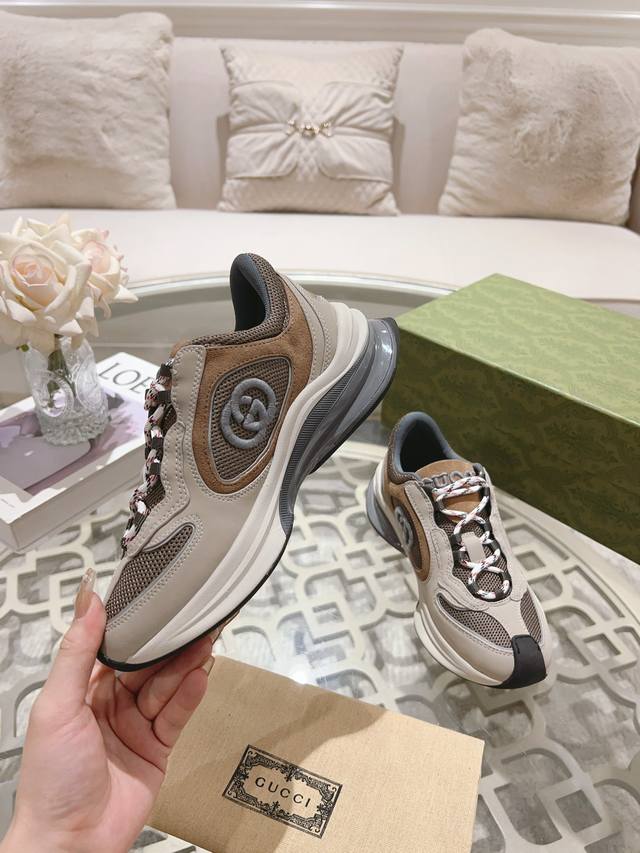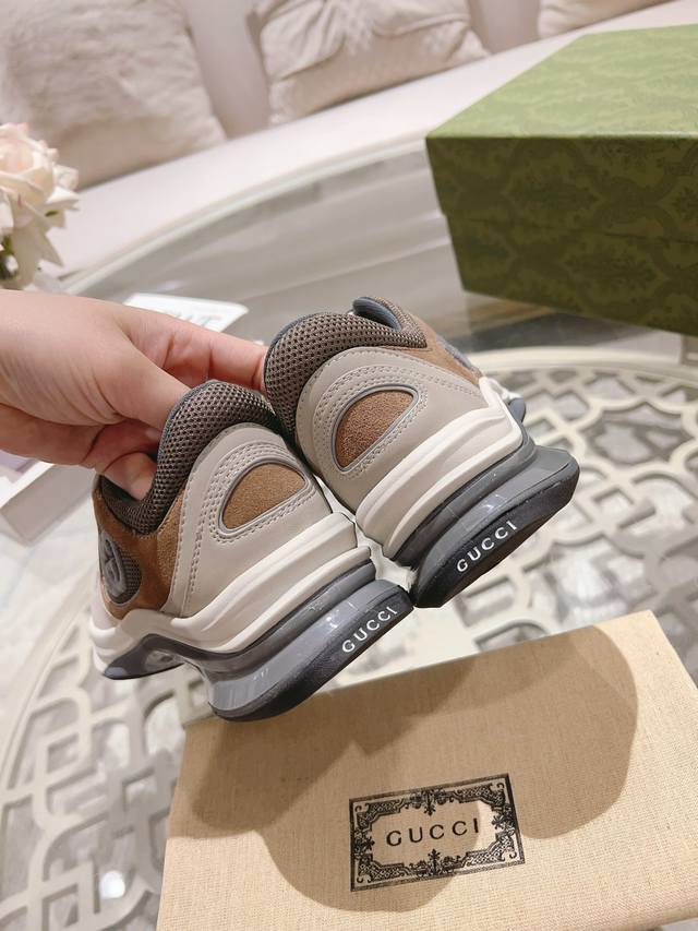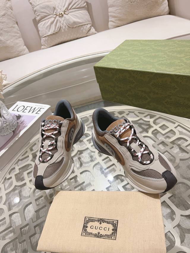 g家最新爆款老爹鞋引潮流的步伐全新系列继续从其他时代的日常生活中寻找灵感,并融入当下的设计精髓3D印花进口头层粒面牛皮制作,饰以经典双 G 字母交织图案,尽显深厚的品牌标识内涵