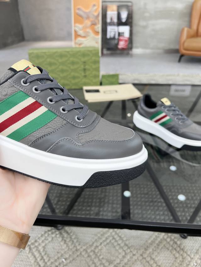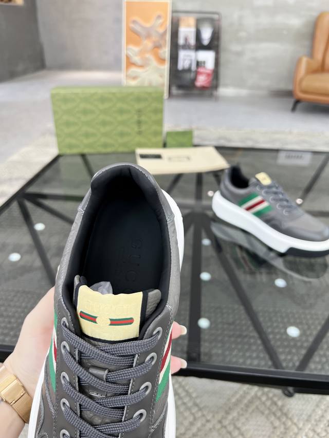/ G 顶级代购 古 炸街男神新品来袭,超人气爆款专柜新款,原厂配置意大利进口牛皮面料,高品质复杂拼接工艺,经典的外观搭配气垫新底更加潮达人,进口牛皮内里垫,透气舒