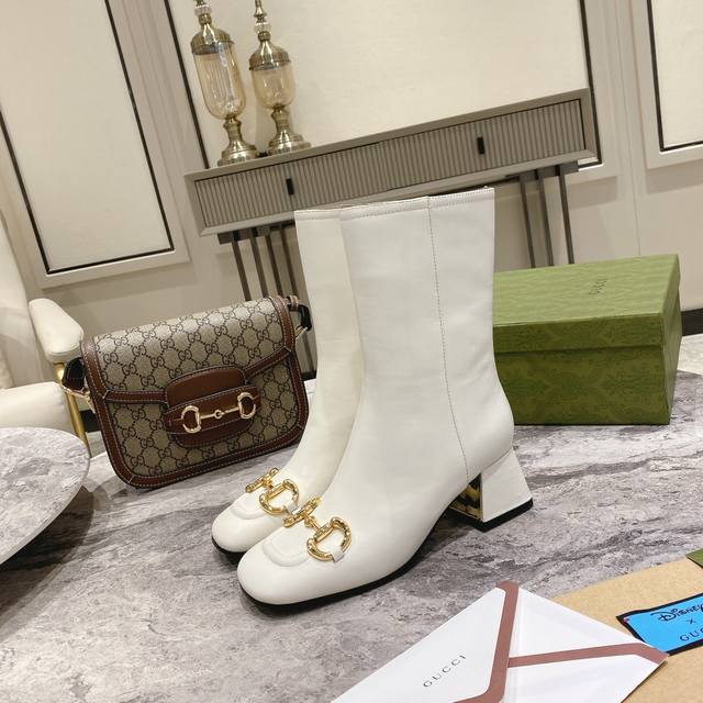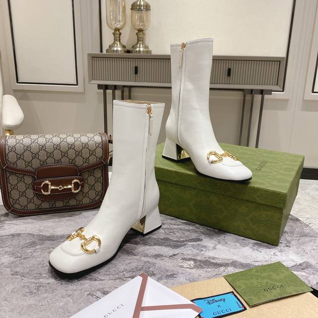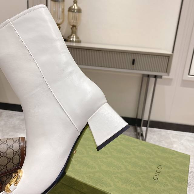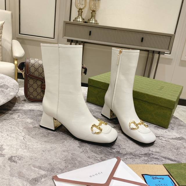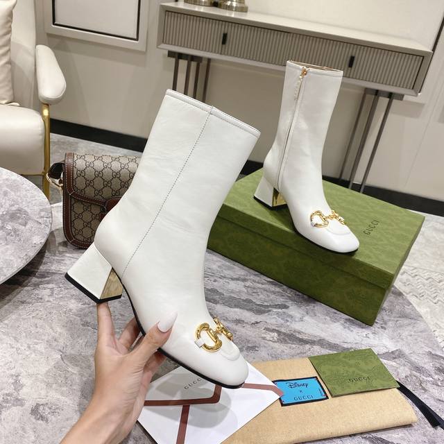 / G*Cci 马衔扣方头中跟短靴。这款踝靴采用羊皮鞋面制作,饰以品牌经典的马衔扣符号元素,立体方跟和方形鞋头令整款设计更添精致感。 材质:鞋面进口小牛皮 羊皮内里