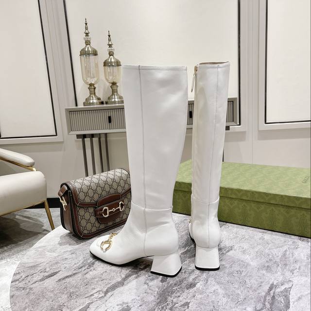 / G*Cci 马衔扣方头中跟长靴 这款踝靴采用牛皮鞋面制作,饰以品牌经典的马衔扣符号元素,立体方跟和方形鞋头令整款设计更添精致感。 材质:鞋面进口小牛皮 羊皮内里