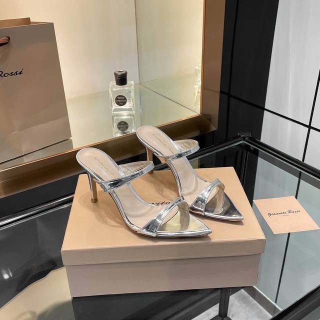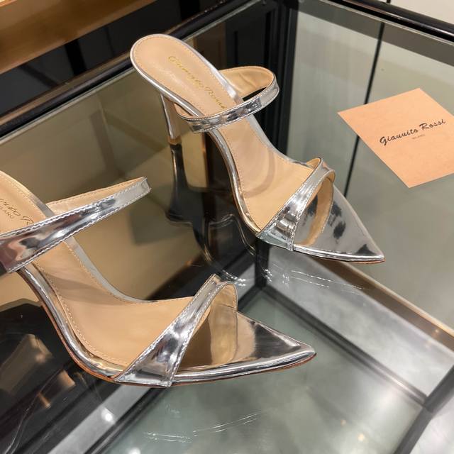 gianvito rossi 2024 经典款尖头高跟拖鞋这双高跟尖头拖鞋,高端真皮材质简直太赞啦!细腻的触感,仿佛在与肌肤轻柔对话。尖头的造型,流露出时尚的韵味,彰显独特气质。高跟鞋的魅力,在每一步中尽情释放。它是品质与时尚的结晶,拥有它,就拥有了一份奢华的享受。