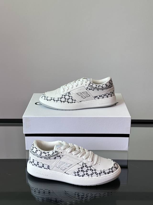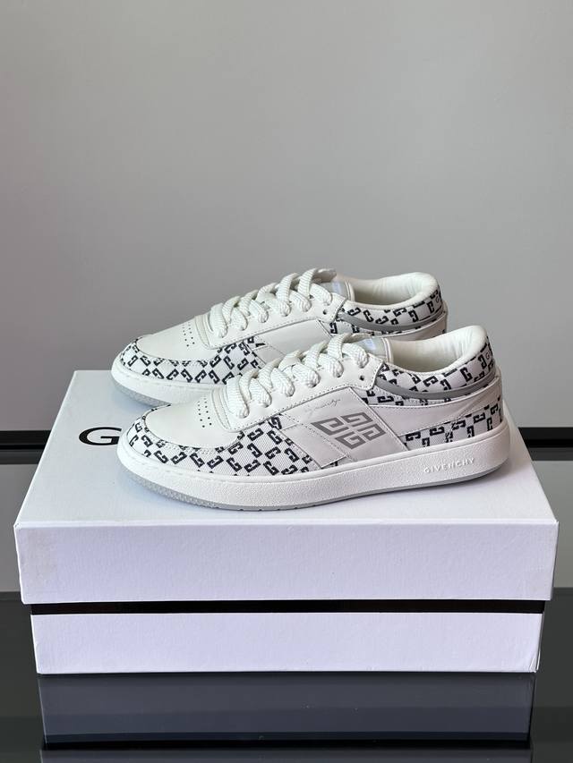 Givench* 男士低帮休闲板鞋,进口头层牛皮面料,透气舒适,舌压印4G Logo刺绣,上脚效果帅气有型,简约时尚百搭精品!Size:38-44 45定做