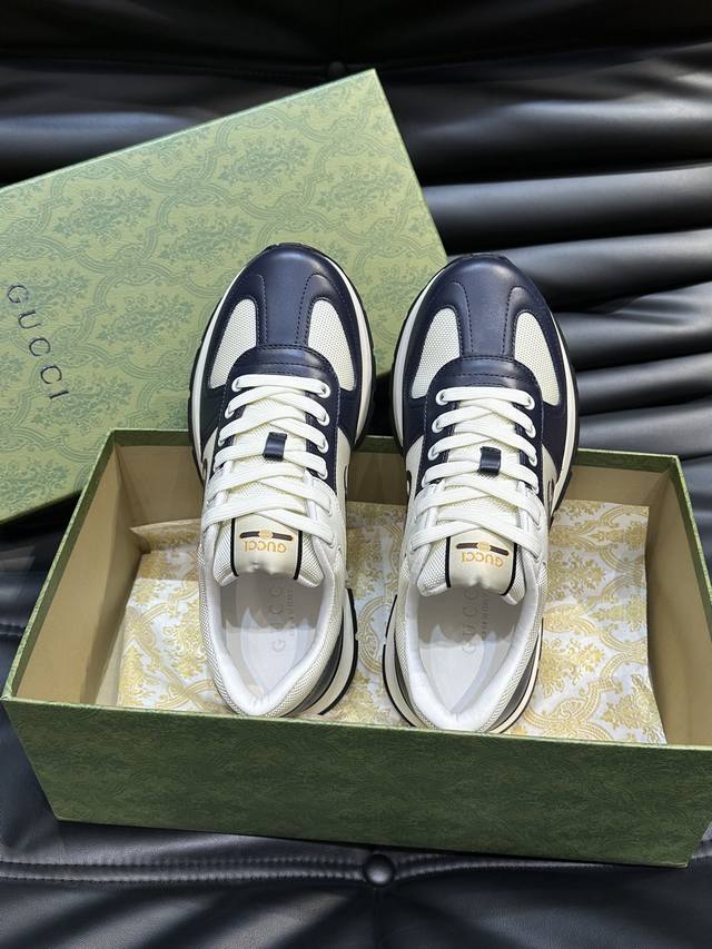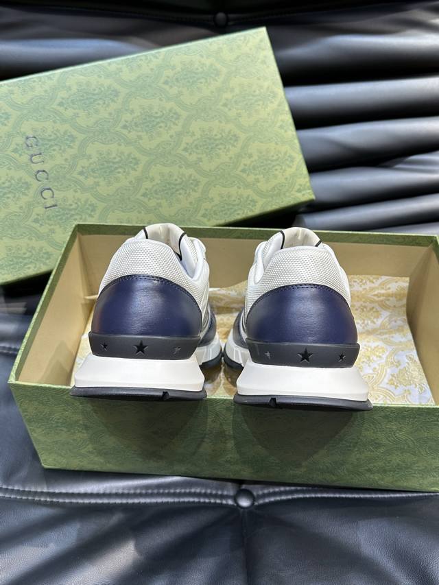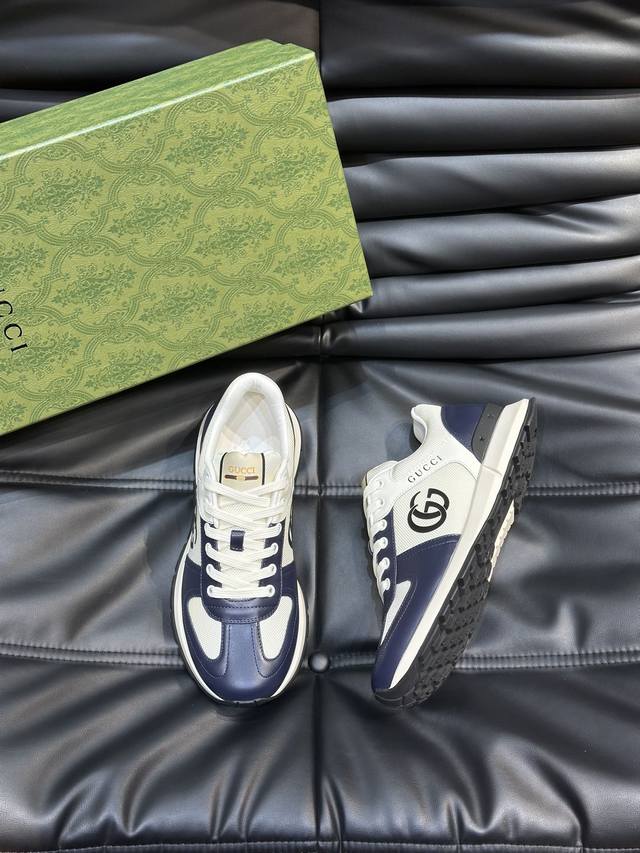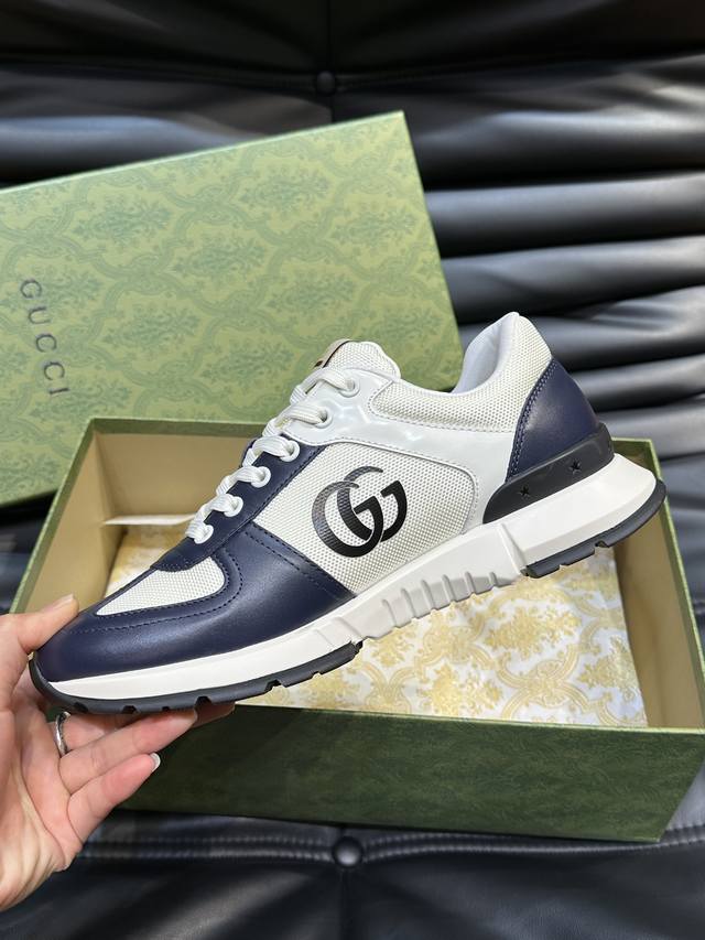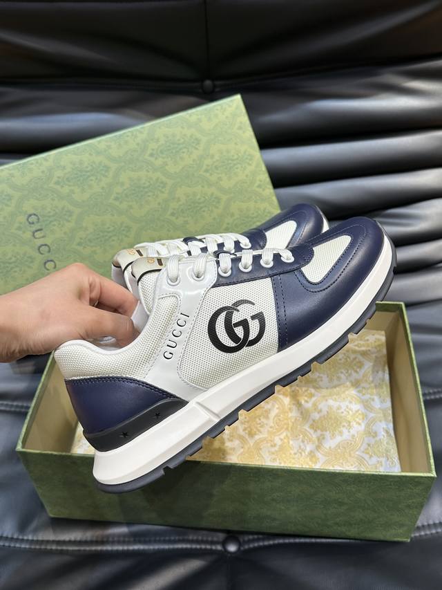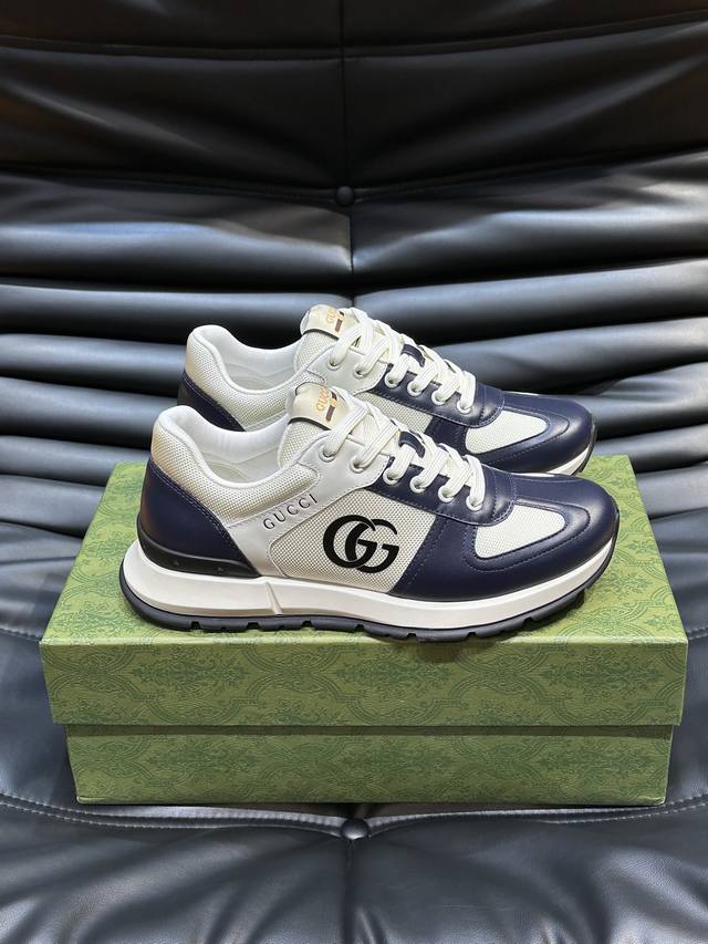 GUCC* 新品男士运动鞋,选用进口牛皮打造,简约舒适版,内里头层羊皮,鞋舌装饰品牌logo,细节精细,原版橡胶大底打造舒适脚感!PSize:38-44 45定