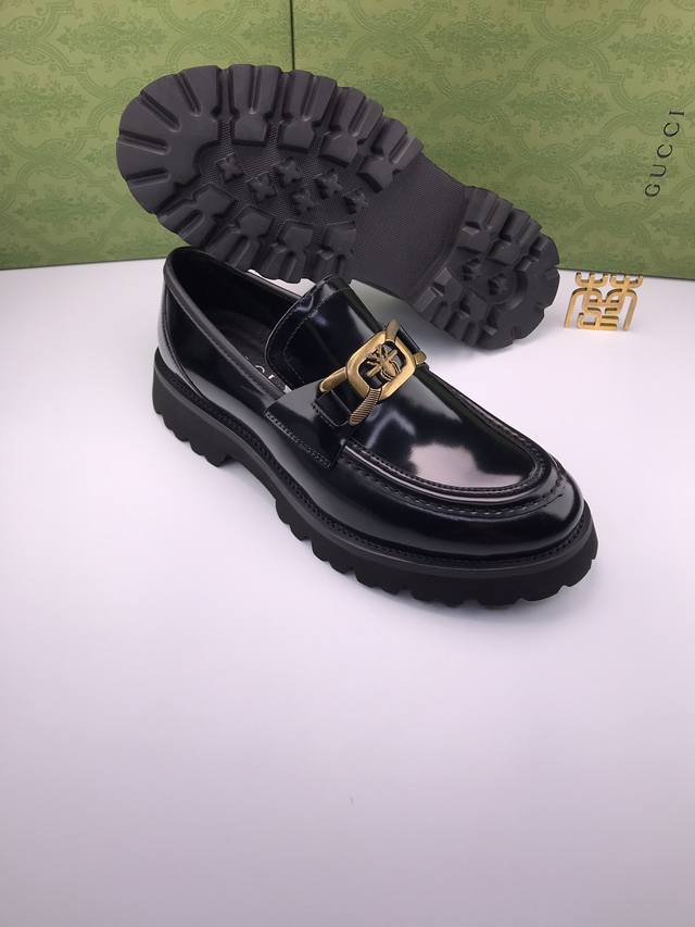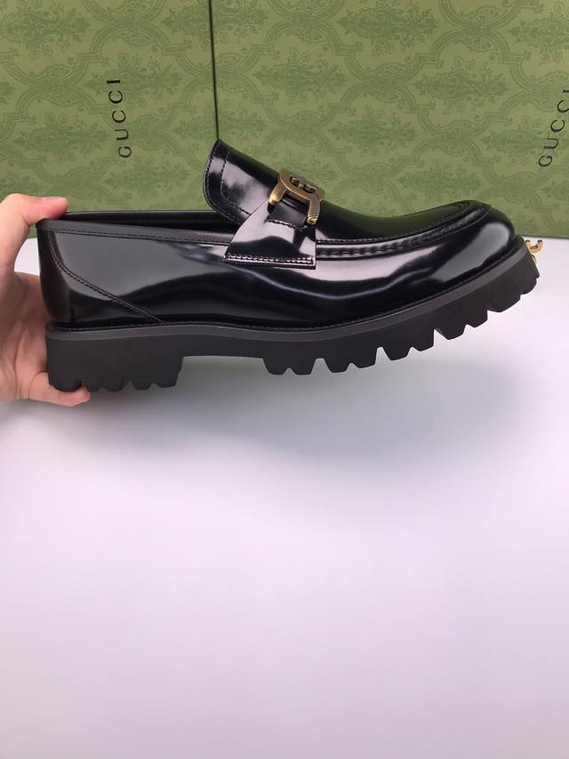 GUCC* 极轻发泡厚底 亮黑开边珠 商务男鞋 亮面开边珠 金属亮黑色 质地柔软 舒适耐穿 不易爆皮脱层 高档亮泽 优质五金扣 羊皮内里 发泡厚底 发泡橡胶 轻